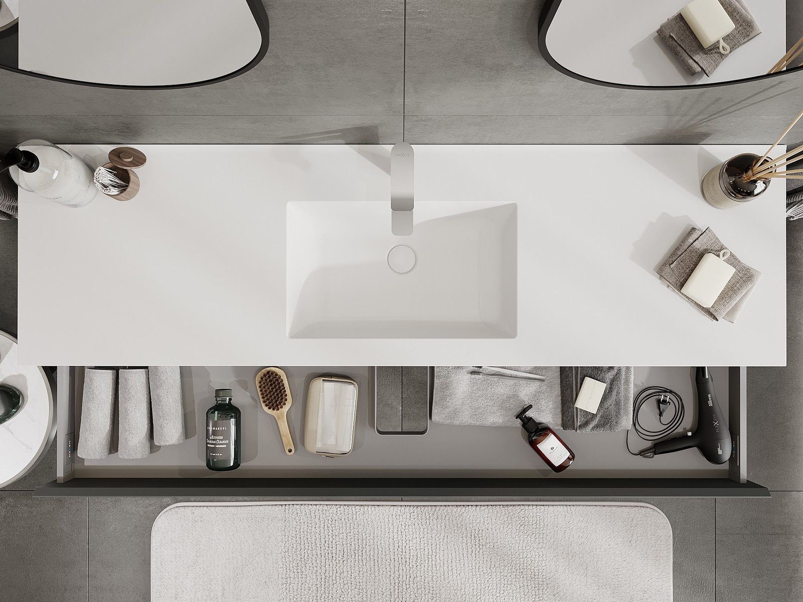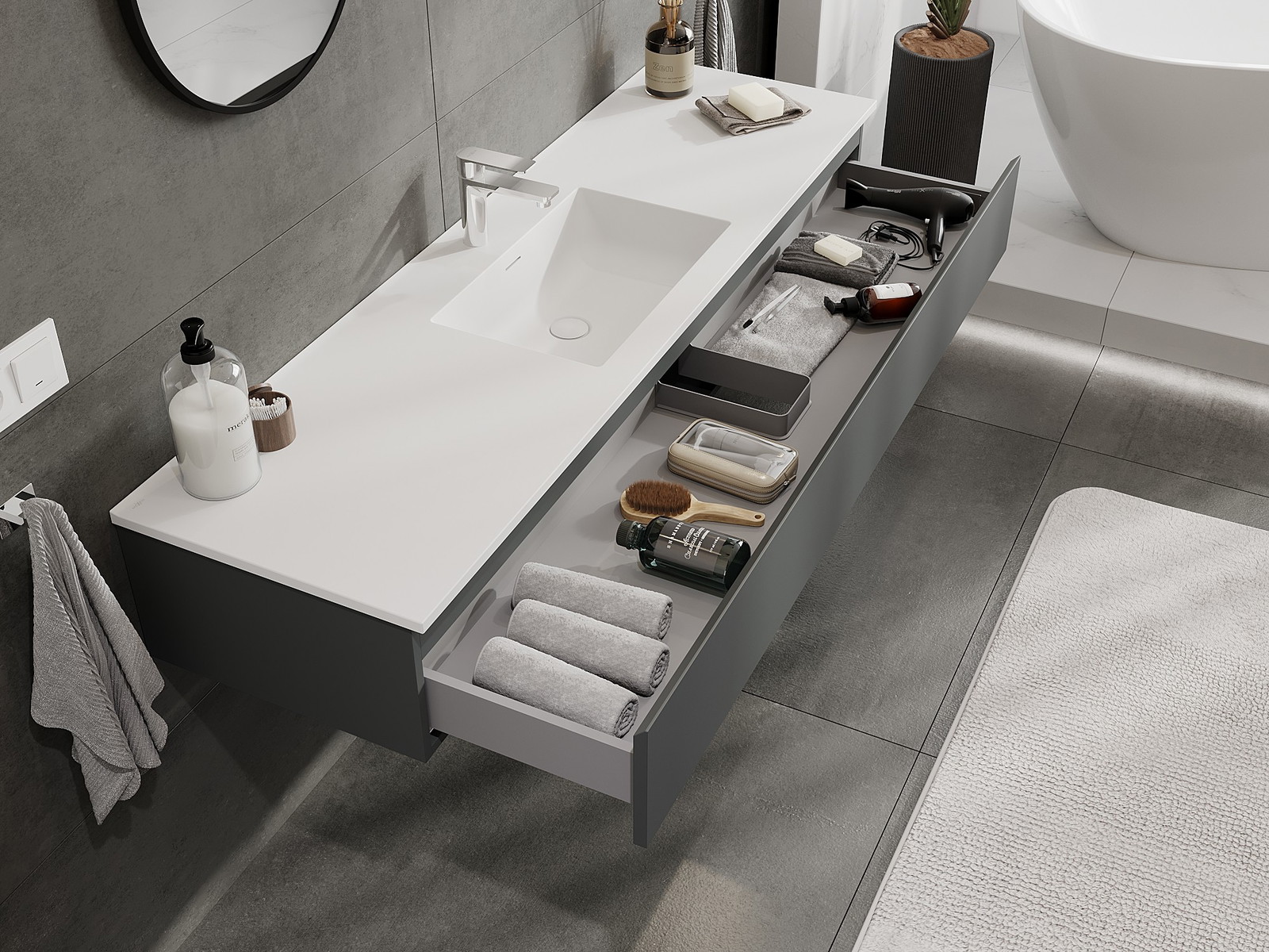 Нашите модулни мебели за баня могат да се комбинират в различни цветови конфигурации, което позволява пълна персонализация. Може да се избере както външният вид, така и функциите на отделните елементи, което позволява съчетаване на мебелите със собствените стилови и функционални предпочитания.