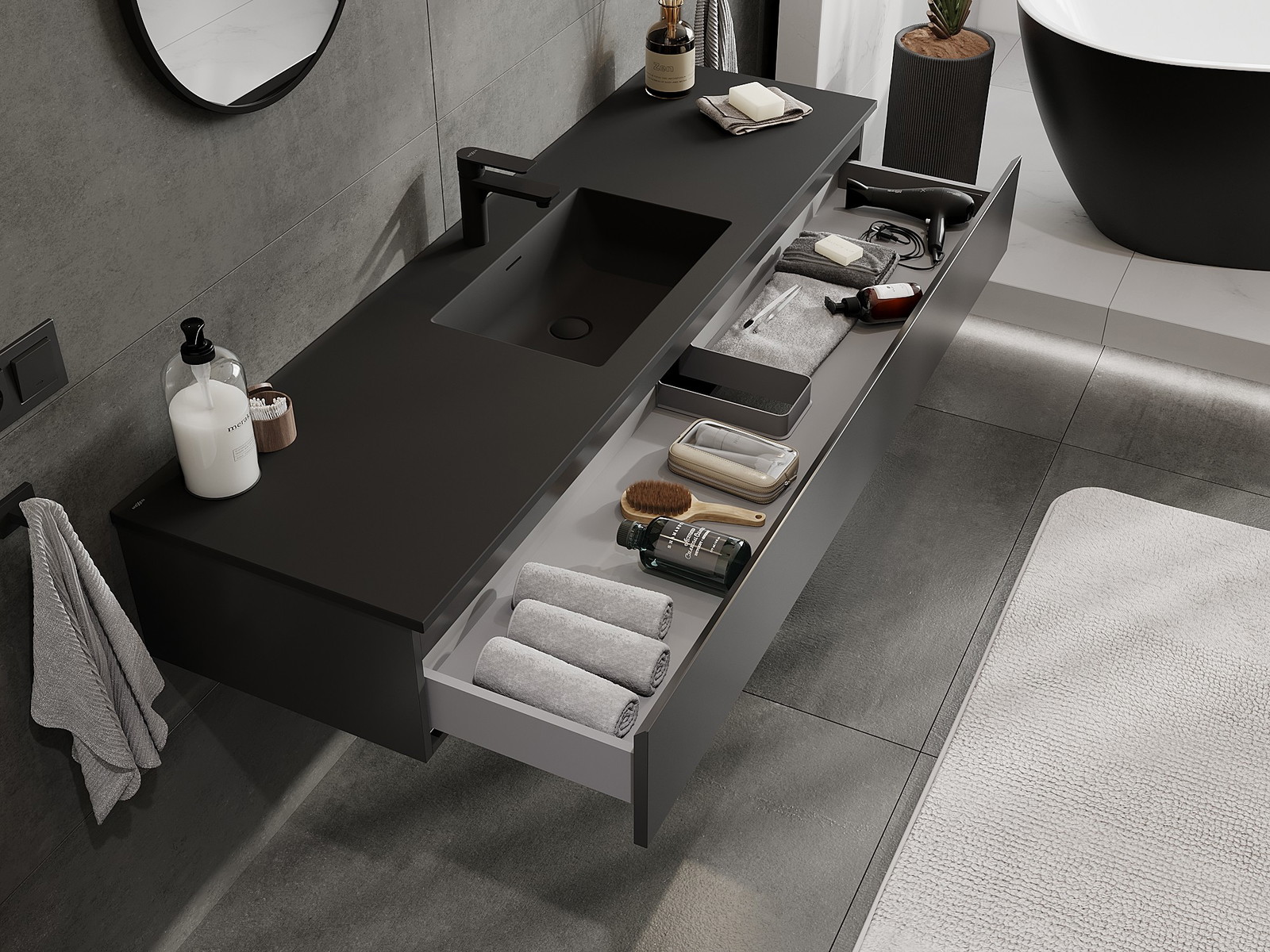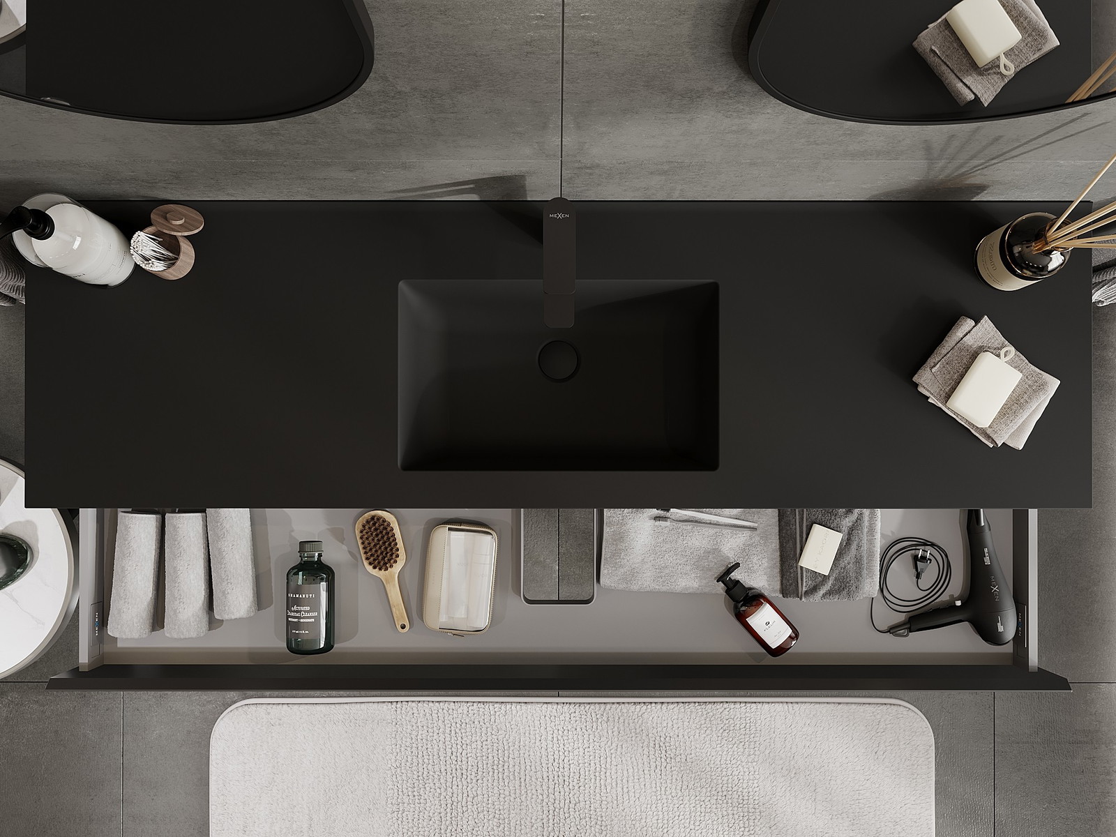 Mexen Orio шкаф за баня 160 см с мивка Otis, 1 чекмедже, черен мат - 91A10-16023-1-BF71-W18M71