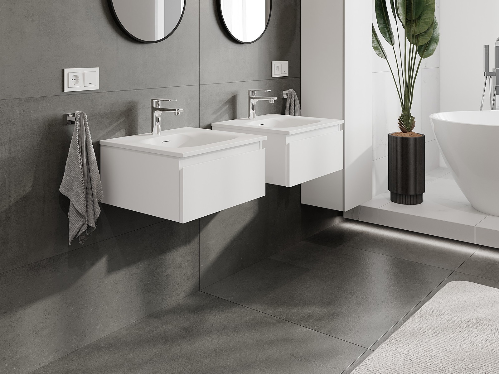 Нашите модулни мебели за баня могат да се комбинират в различни цветови конфигурации, което позволява пълна персонализация. Може да се избере както външният вид, така и функциите на отделните елементи, което позволява съчетаване на мебелите със собствените стилови и функционални предпочитания.