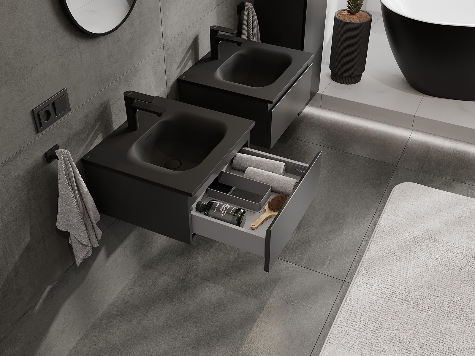 Mexen Orio шкаф за баня 50 см с мивка Vela, 1 чекмедже, черен мат - 91A10-05023-1-BF71-W23M71