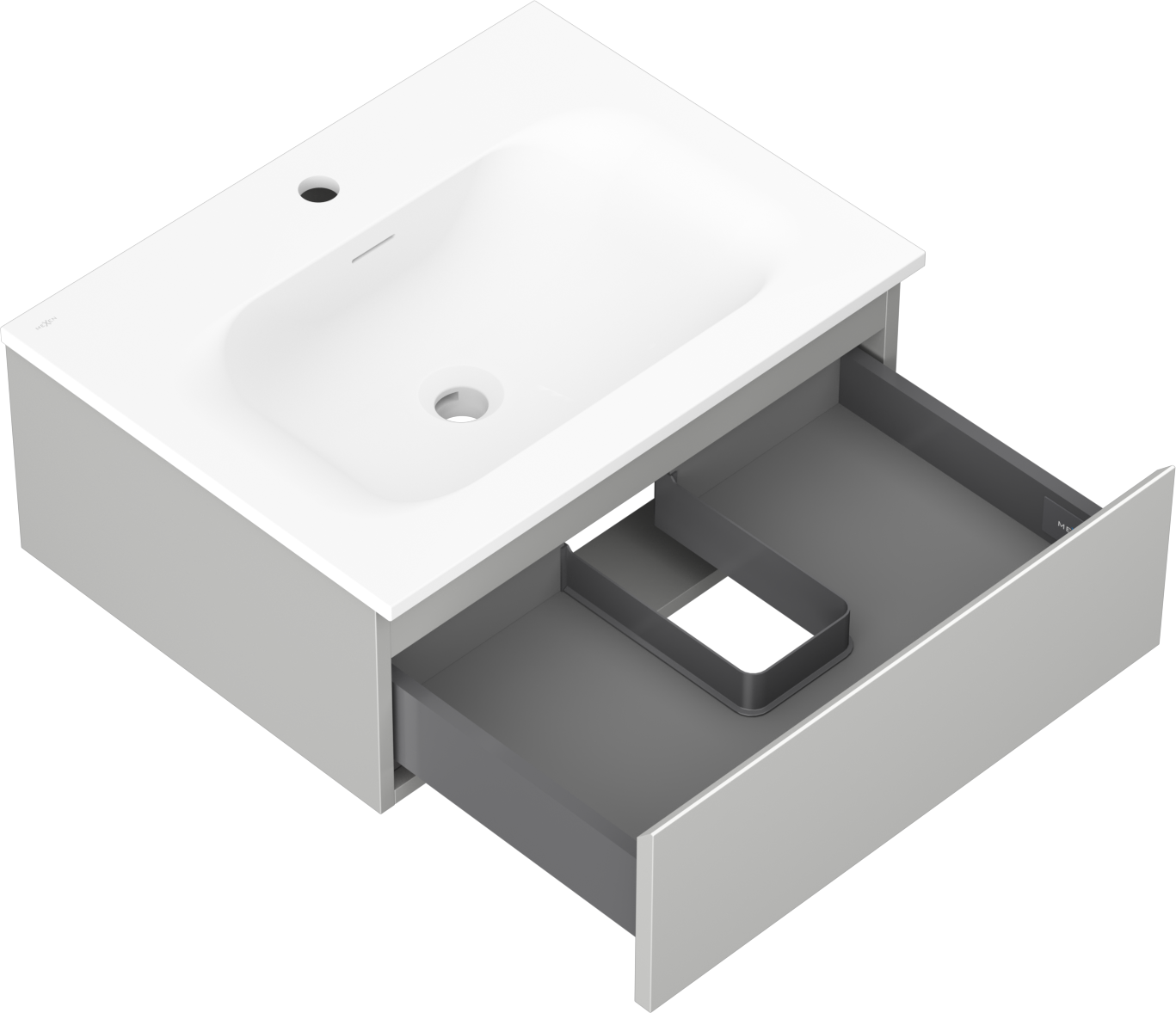 Изрезът в чекмеджето е проектиран по такъв начин, че да побере сифона, който е необходим в мивковите инсталации. Благодарение на това мебелът може да бъде монтиран напълно функционално, без да се налага отказване от пространството в чекмеджето заради инсталацията.