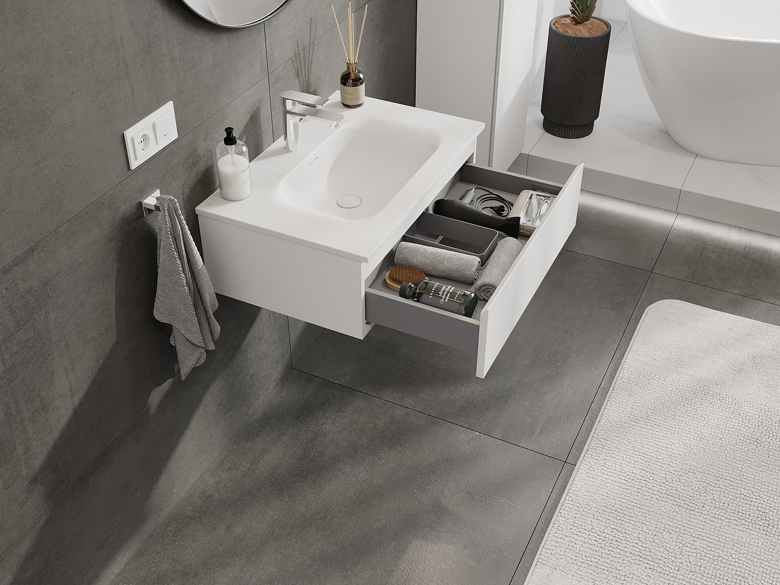 Нашите модулни мебели за баня могат да се комбинират в различни цветови конфигурации, което позволява пълна персонализация. Може да се избере както външният вид, така и функциите на отделните елементи, което позволява съчетаване на мебелите със собствените стилови и функционални предпочитания.