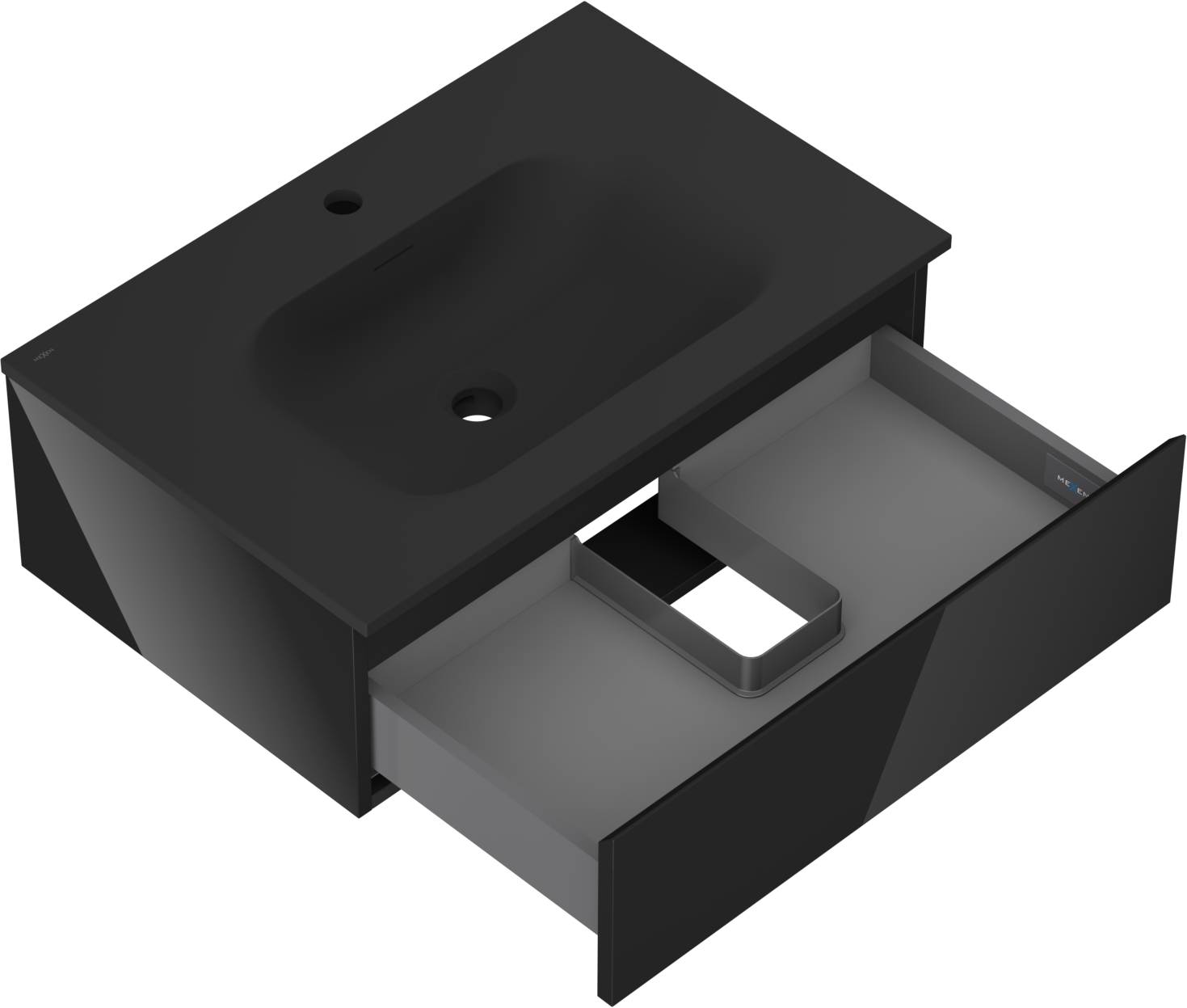 Mexen Orio шкаф за баня 70 см с мивка Vela, 1 чекмедже, черен гланц/черен мат - 91A10-07023-1-BF70-W23M71