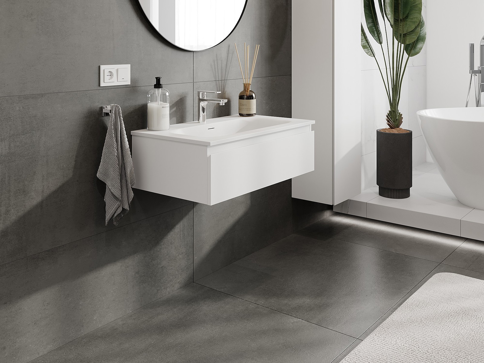 Корпусът на шкафа се доставя напълно сглобен, което означава максимално удобство и спестяване на време. Не е нужно да губите часове за сглобяване на мебела – просто го монтирайте на избраното място в банята. Това е идеалното решение за хора, които ценят бързия монтаж и незабавния ефект.