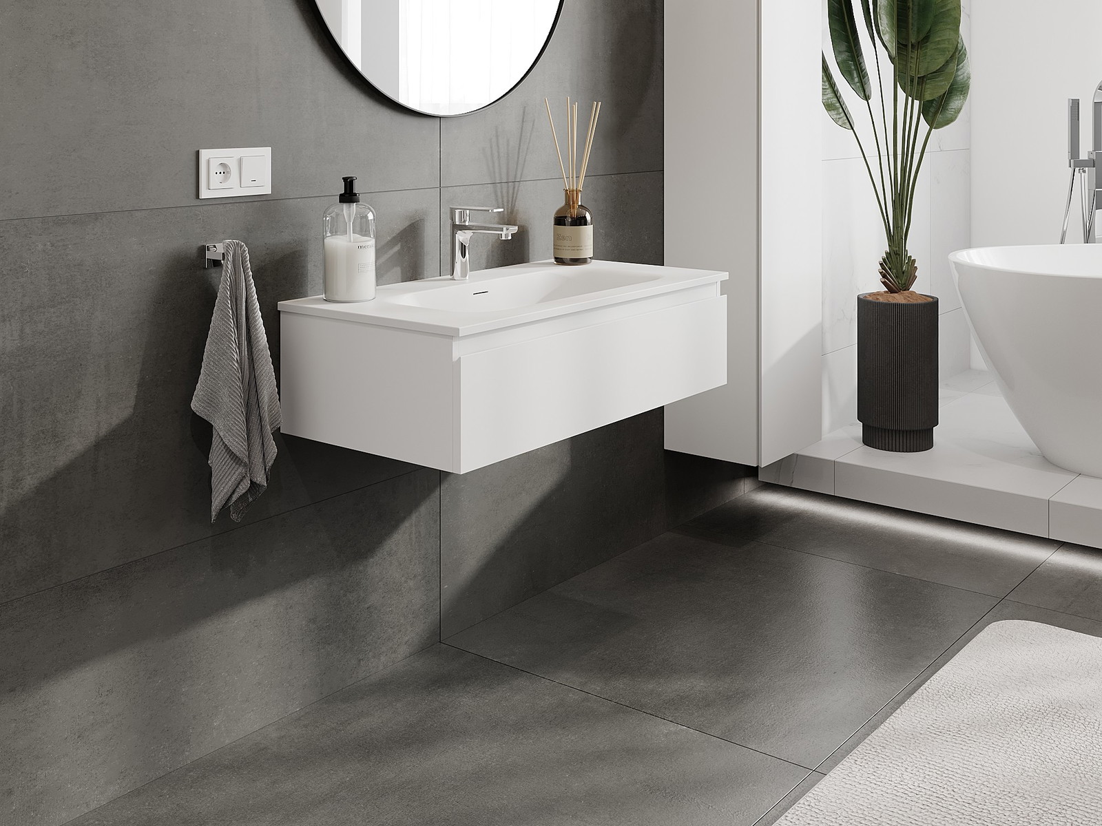 Корпусът на шкафа се доставя напълно сглобен, което означава максимално удобство и спестяване на време. Не е нужно да губите часове за сглобяване на мебела – просто го монтирайте на избраното място в банята. Това е идеалното решение за хора, които ценят бързия монтаж и незабавния ефект.