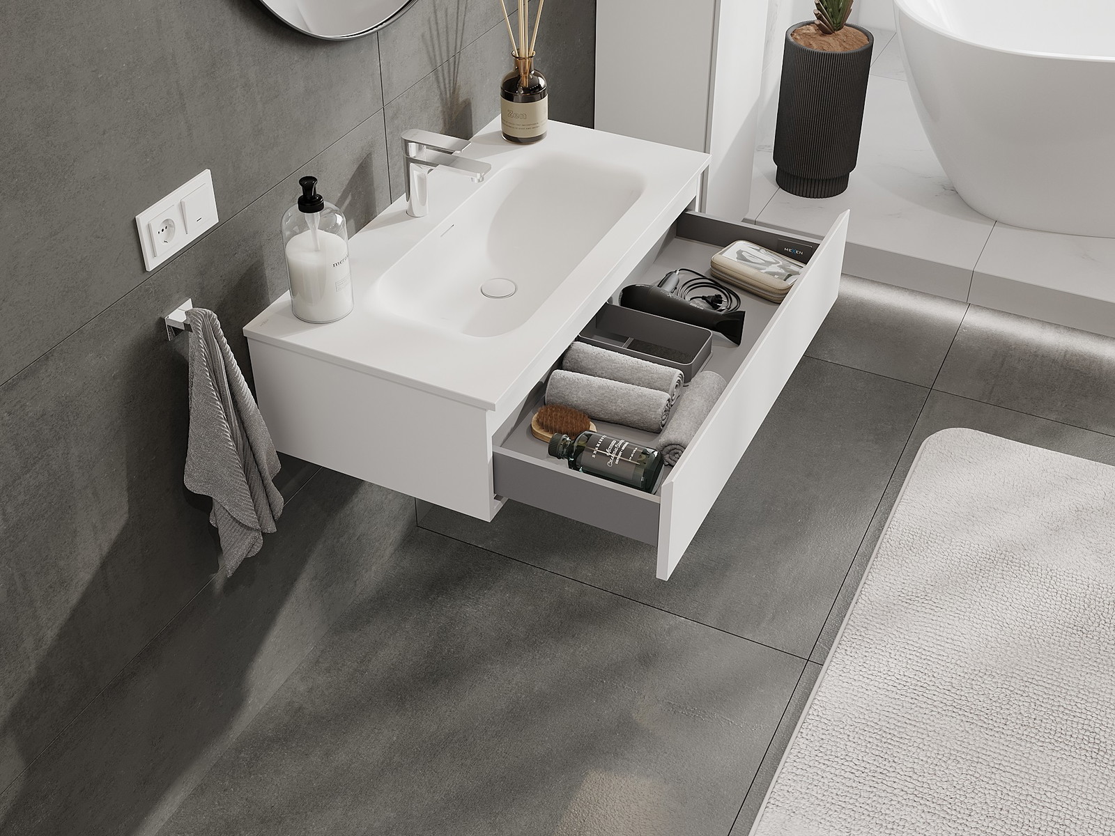 Mexen Orio шкаф за баня 90 см с мивка Vela, 1 чекмедже, бял мат - 91A10-09023-1-BF01-W23M01