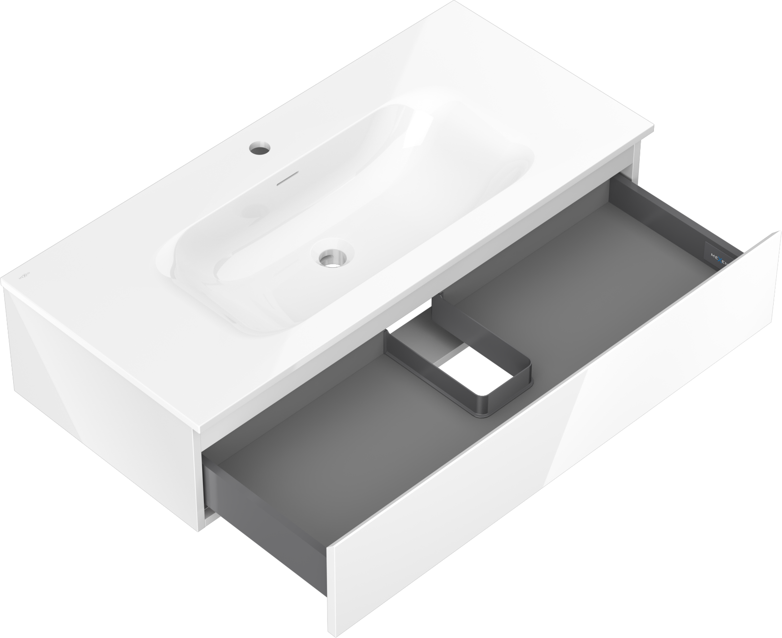 Изрезът в чекмеджето е проектиран по такъв начин, че да побере сифона, който е необходим в мивковите инсталации. Благодарение на това мебелът може да бъде монтиран напълно функционално, без да се налага отказване от пространството в чекмеджето заради инсталацията.
