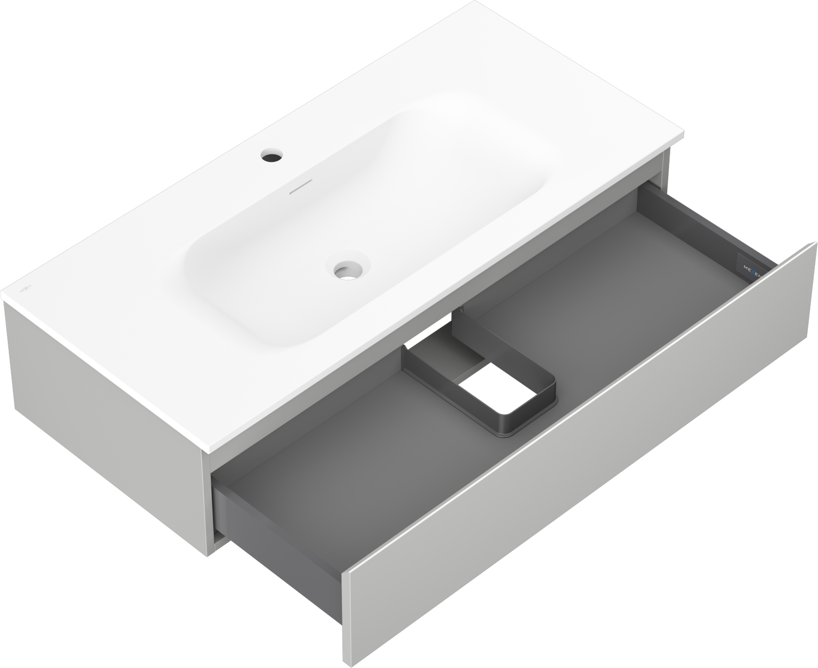 Изрезът в чекмеджето е проектиран по такъв начин, че да побере сифона, който е необходим в мивковите инсталации. Благодарение на това мебелът може да бъде монтиран напълно функционално, без да се налага отказване от пространството в чекмеджето заради инсталацията.