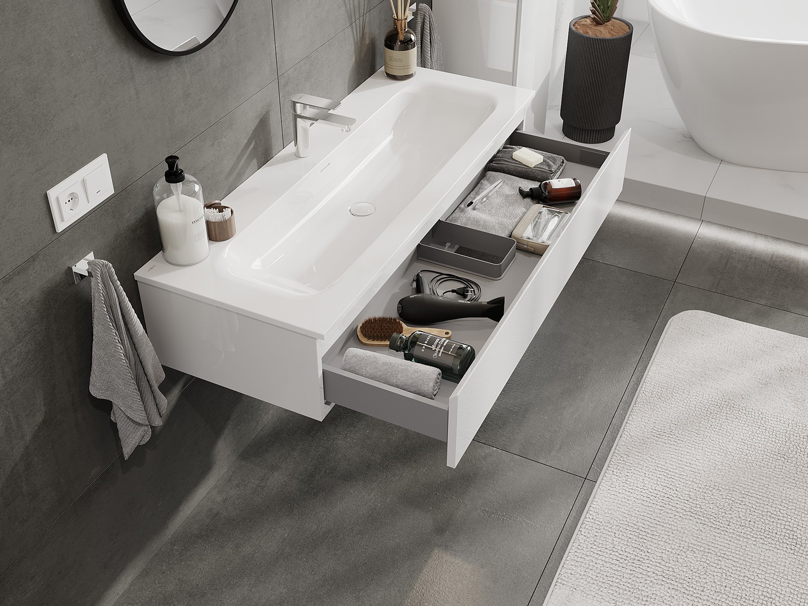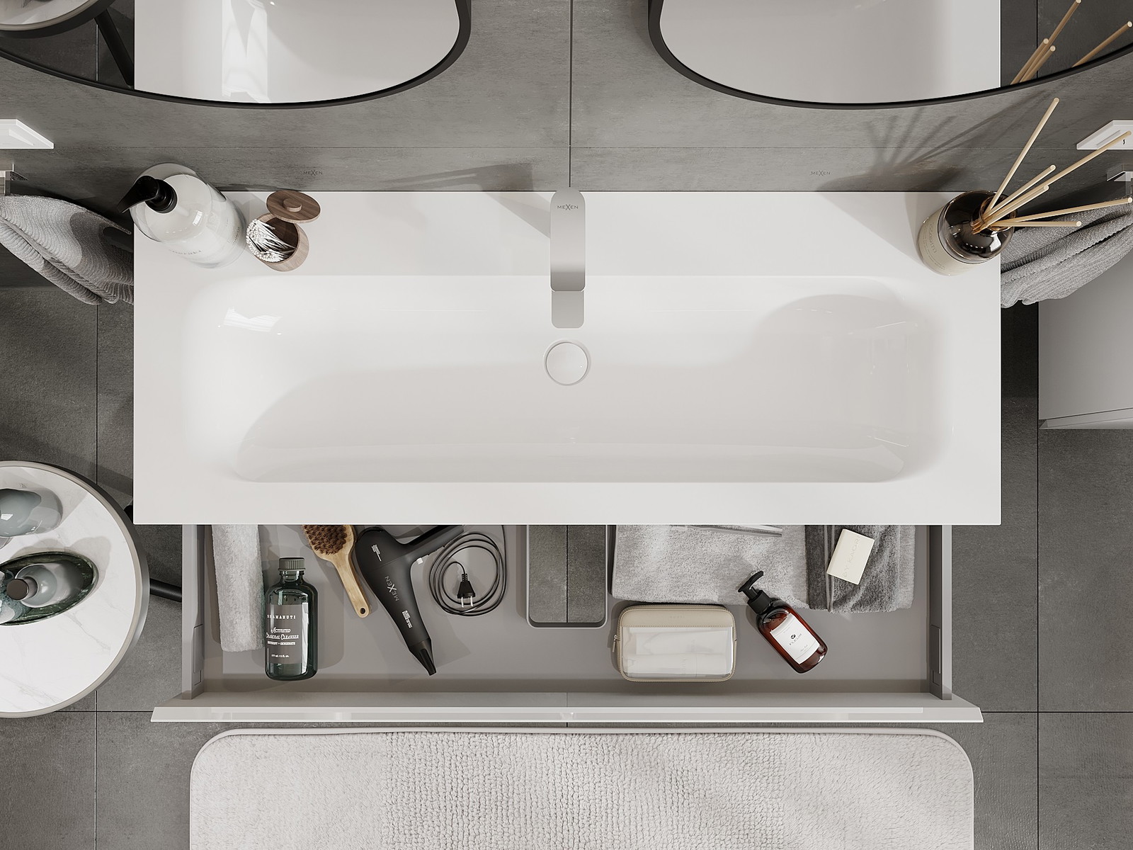 Нашите модулни мебели за баня могат да се комбинират в различни цветови конфигурации, което позволява пълна персонализация. Може да се избере както външният вид, така и функциите на отделните елементи, което позволява съчетаване на мебелите със собствените стилови и функционални предпочитания.