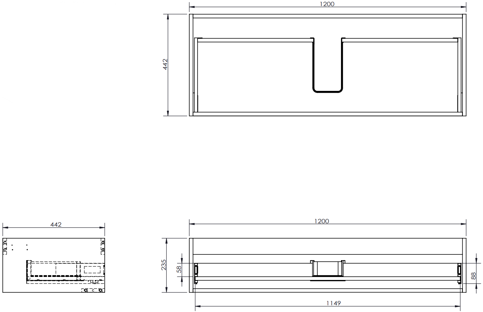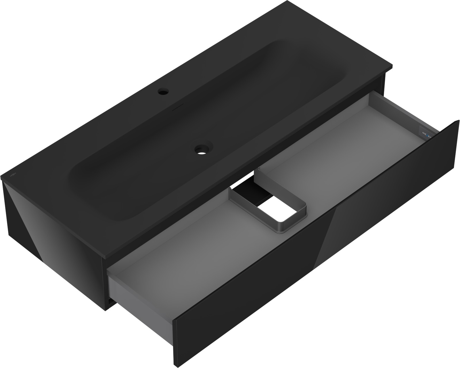 Изрезът в чекмеджето е проектиран по такъв начин, че да побере сифона, който е необходим в мивковите инсталации. Благодарение на това мебелът може да бъде монтиран напълно функционално, без да се налага отказване от пространството в чекмеджето заради инсталацията.