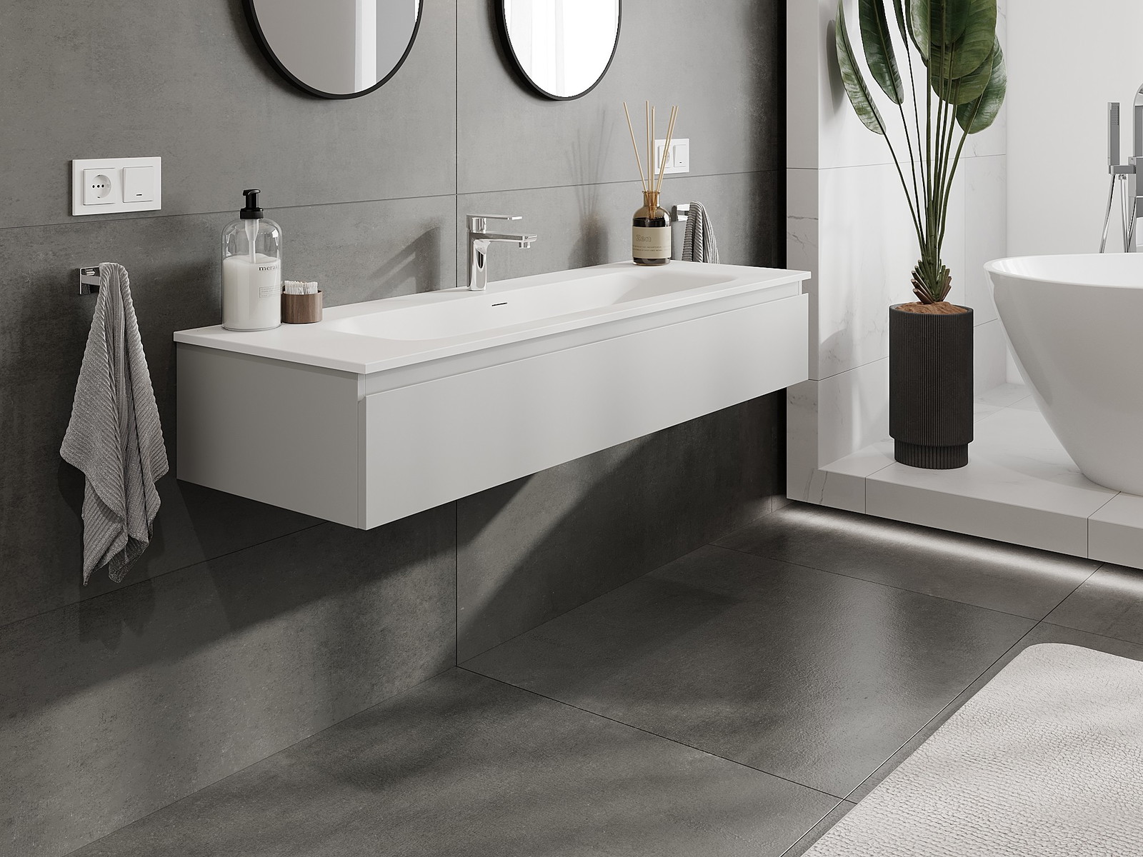 Mexen Orio шкафче за баня 140 см с мивка Vela, 1 чекмедже, сиво мат/бяло мат