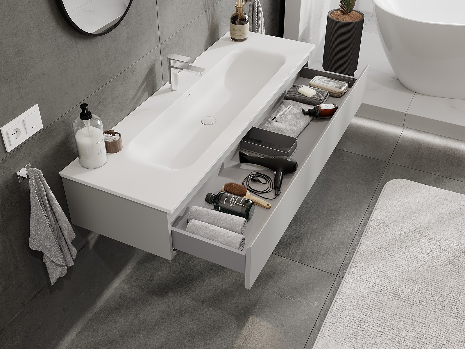Нашите модулни мебели за баня могат да се комбинират в различни цветови конфигурации, което позволява пълна персонализация. Може да се избере както външният вид, така и функциите на отделните елементи, което позволява съчетаване на мебелите със собствените стилови и функционални предпочитания.