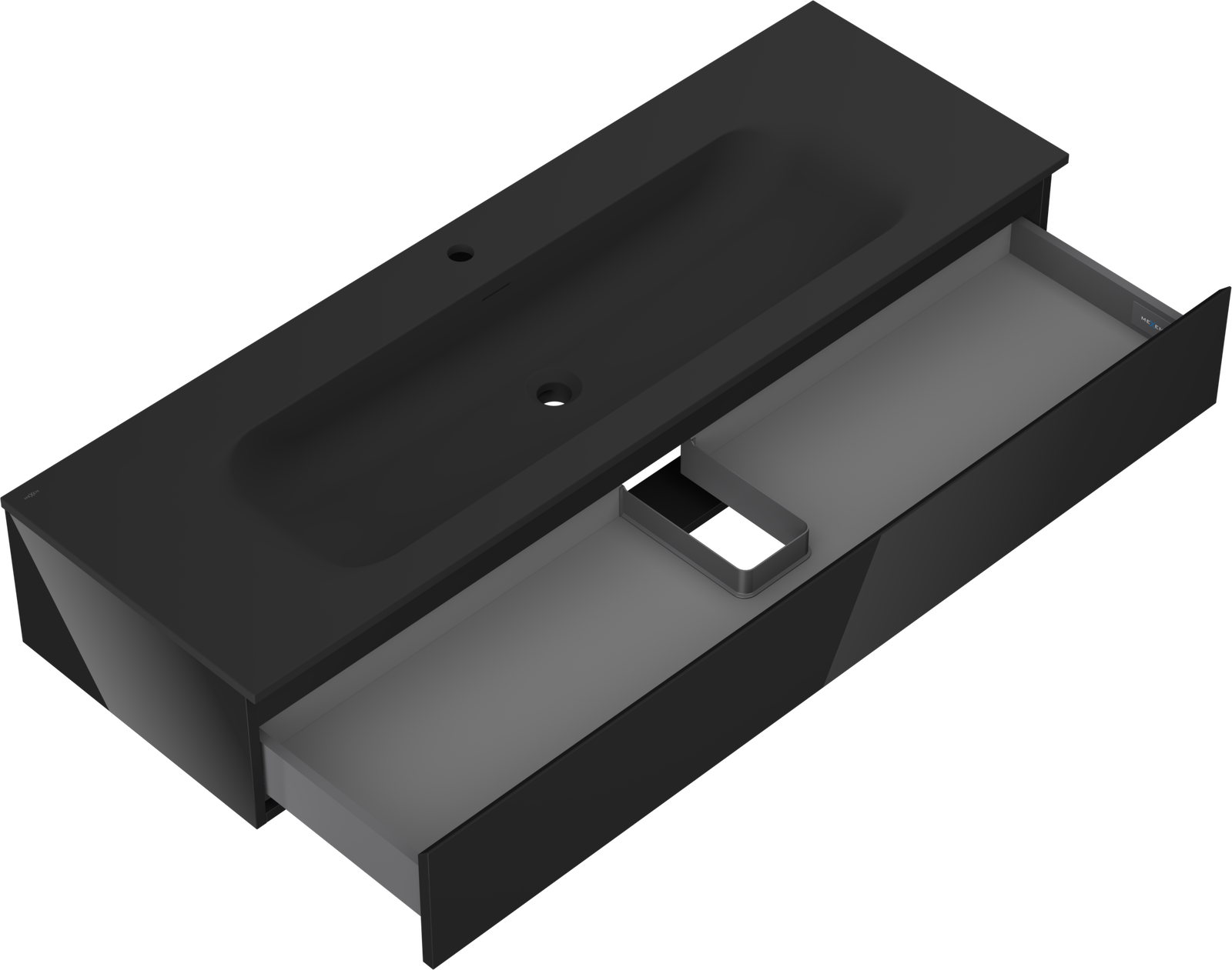 Изрезът в чекмеджето е проектиран по такъв начин, че да побере сифона, който е необходим в мивковите инсталации. Благодарение на това мебелът може да бъде монтиран напълно функционално, без да се налага отказване от пространството в чекмеджето заради инсталацията.