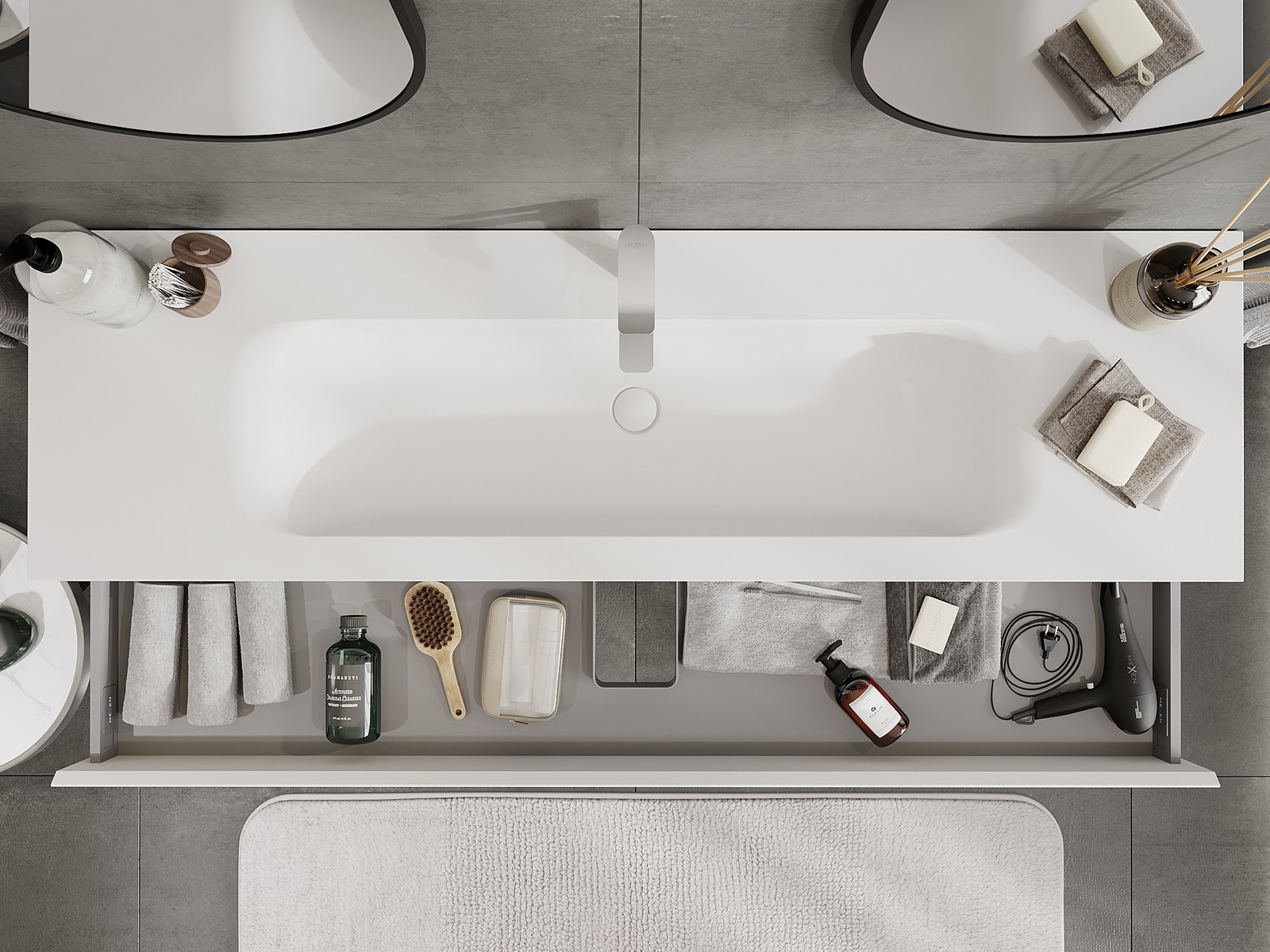 Нашите модулни мебели за баня могат да се комбинират в различни цветови конфигурации, което позволява пълна персонализация. Може да се избере както външният вид, така и функциите на отделните елементи, което позволява съчетаване на мебелите със собствените стилови и функционални предпочитания.