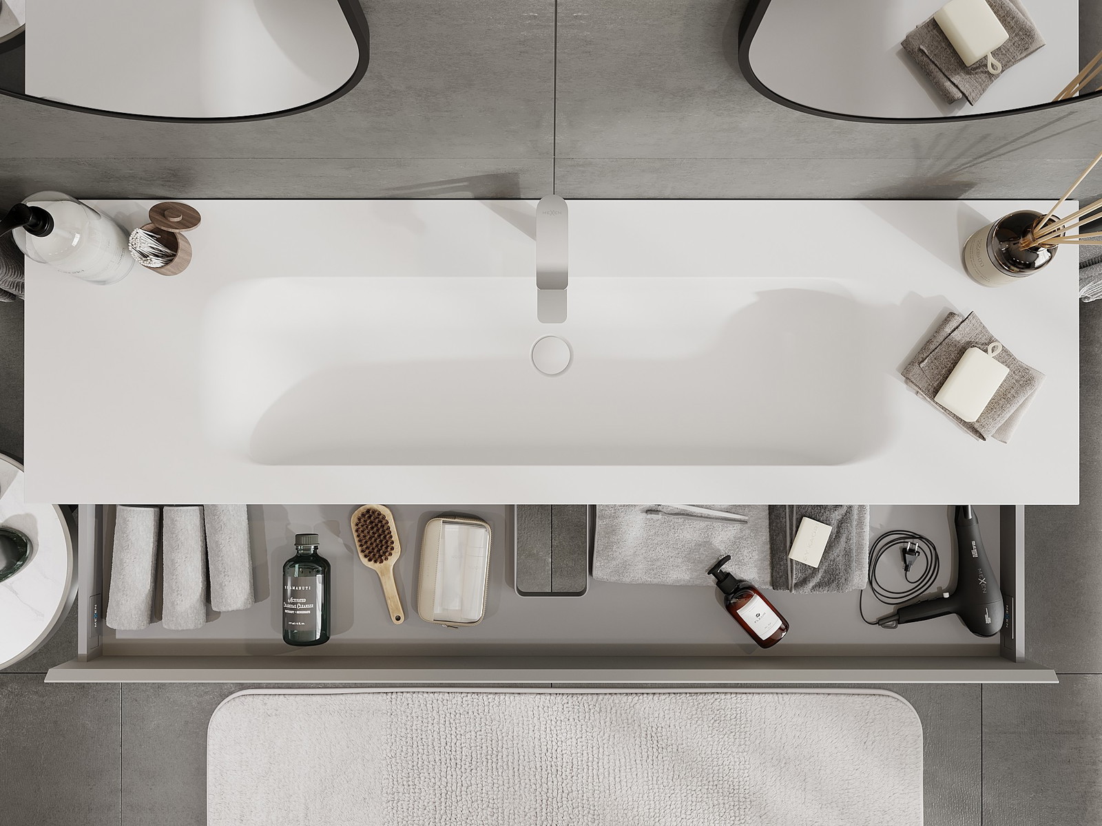 Mexen Orio шкаф за баня 160 см с мивка Vela, 1 чекмедже, сив мат/бял мат - 91A10-16023-1-BF62-W23M01