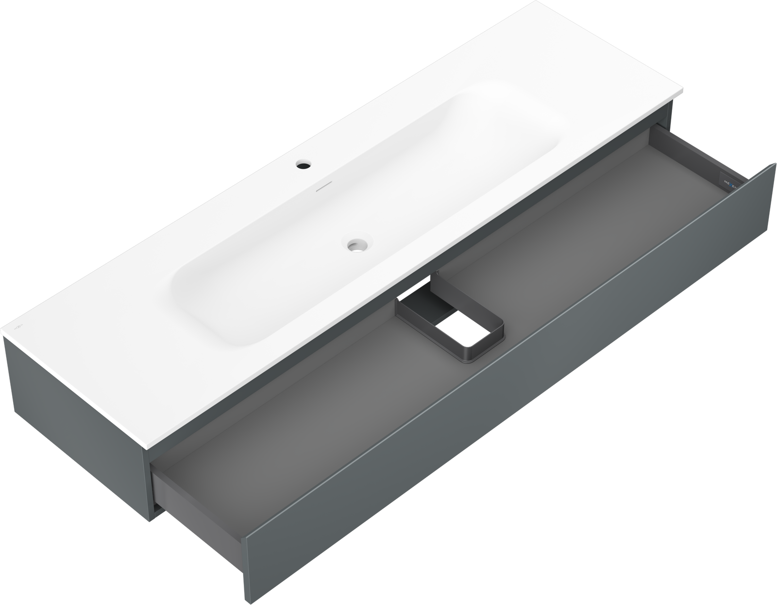 Изрезът в чекмеджето е проектиран по такъв начин, че да побере сифона, който е необходим в мивковите инсталации. Благодарение на това мебелът може да бъде монтиран напълно функционално, без да се налага отказване от пространството в чекмеджето заради инсталацията.