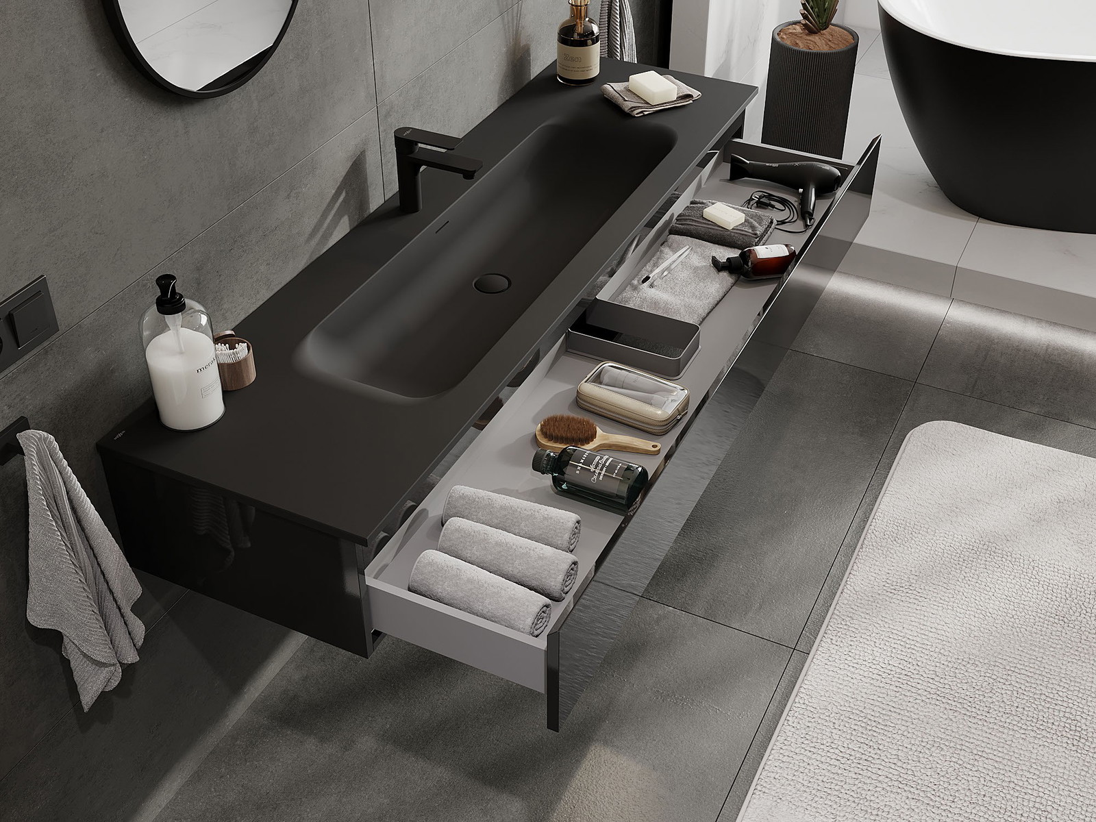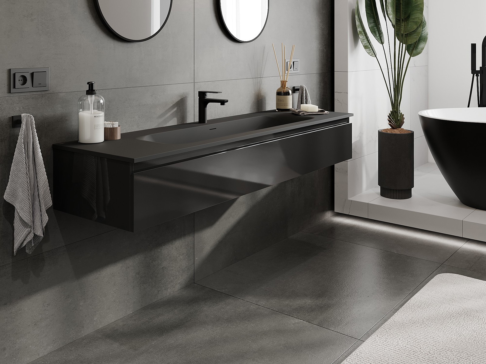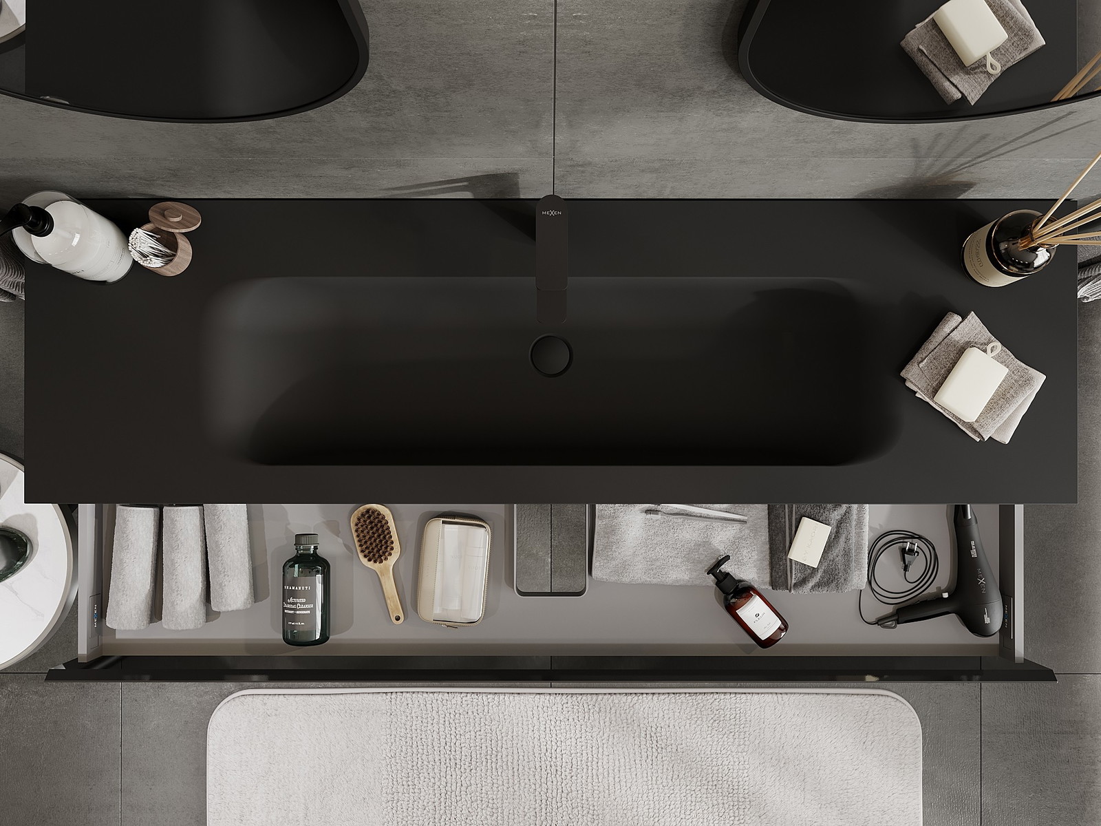 Mexen Orio шкаф за баня 160 см с мивка Vela, 1 чекмедже, черен гланц/черен мат - 91A10-16023-1-BF70-W23M71