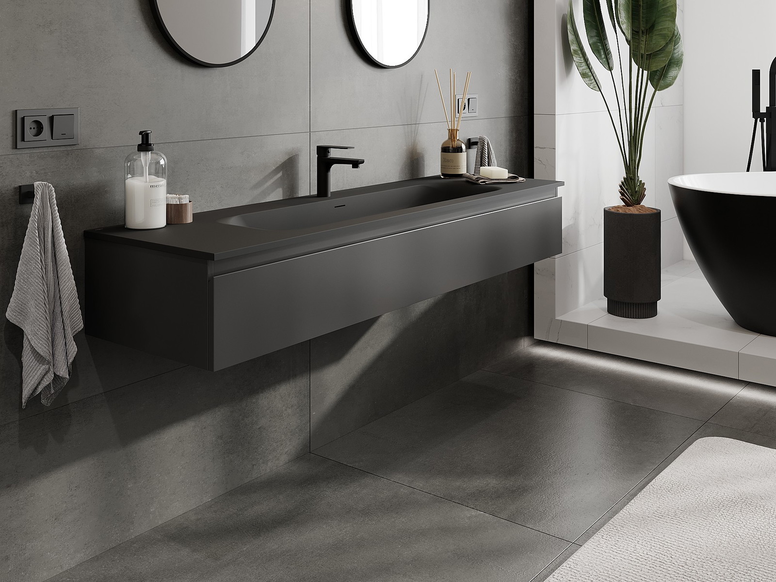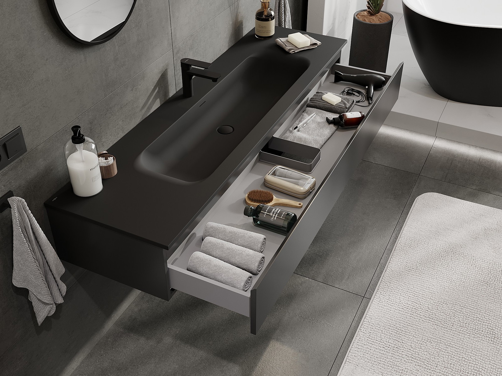 Mexen Orio шкаф за баня 160 см с мивка Vela, 1 чекмедже, черен мат - 91A10-16023-1-BF71-W23M71