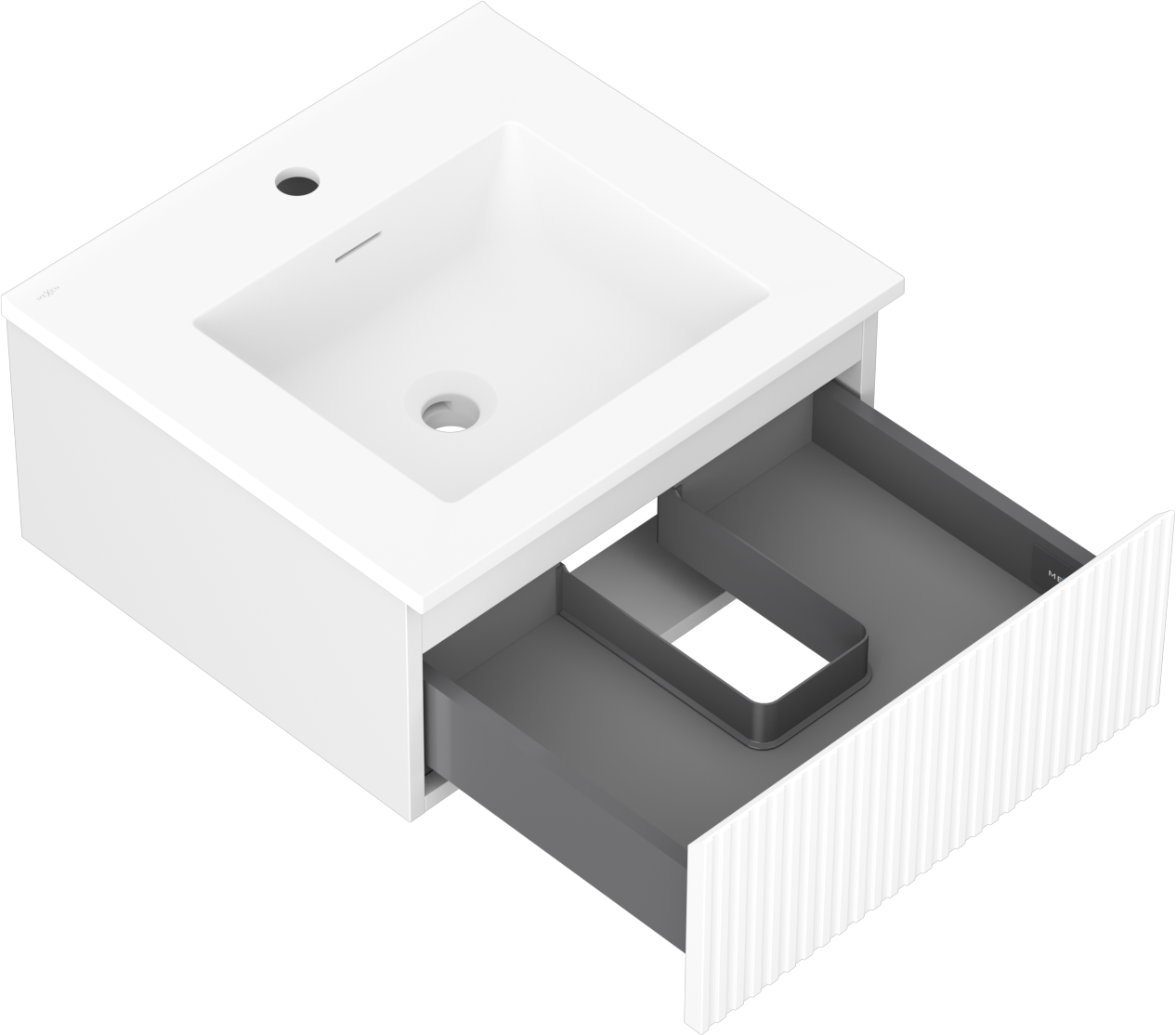 Mexen Rivel 50 см шкаф за баня с мивка Otis, 1 чекмедже, оребрен, бял мат