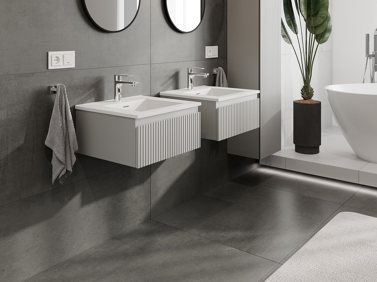 Нашите модулни мебели за баня могат да се комбинират в различни цветови конфигурации, което позволява пълна персонализация. Може да се избере както външният вид, така и функциите на отделните елементи, което позволява съчетаване на мебелите със собствените стилови и функционални предпочитания.