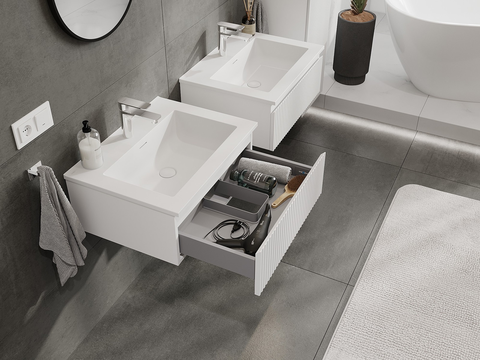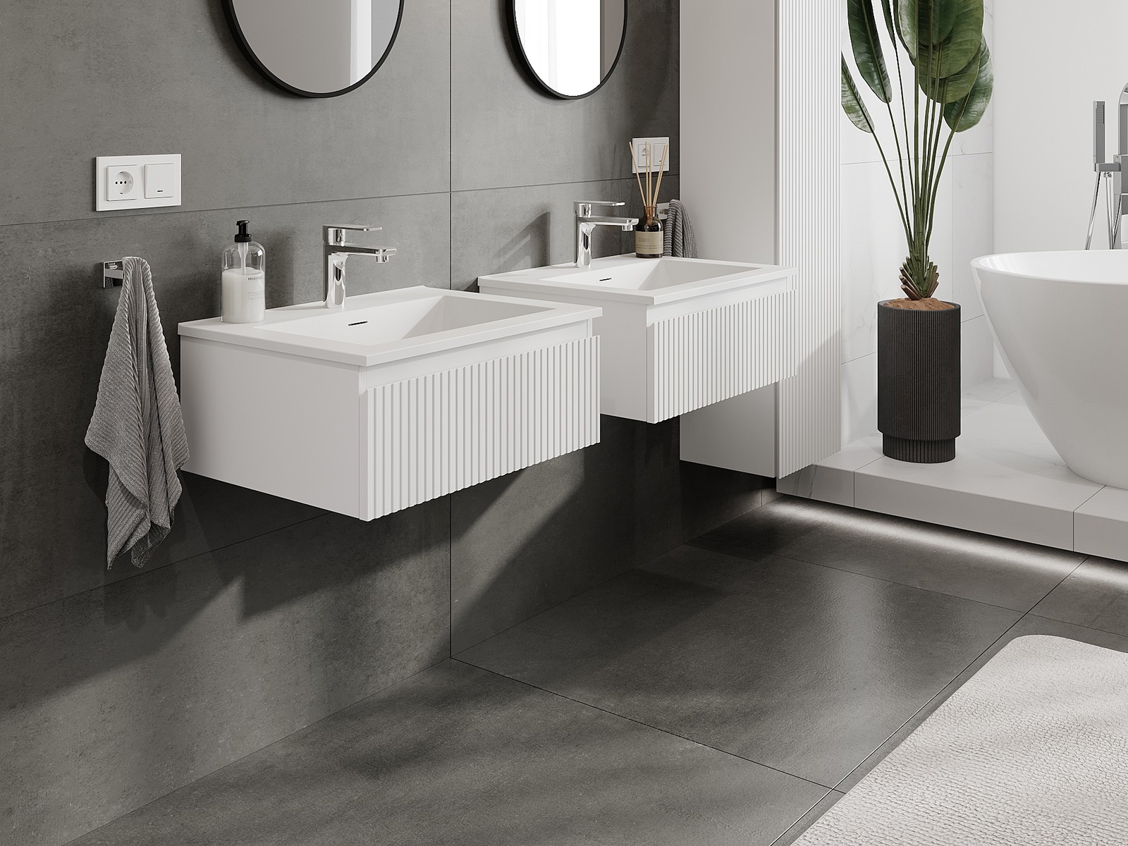 Mexen Rivel шкаф за баня 60 см с мивка Otis, 1 чекмедже, оребрен, бял мат