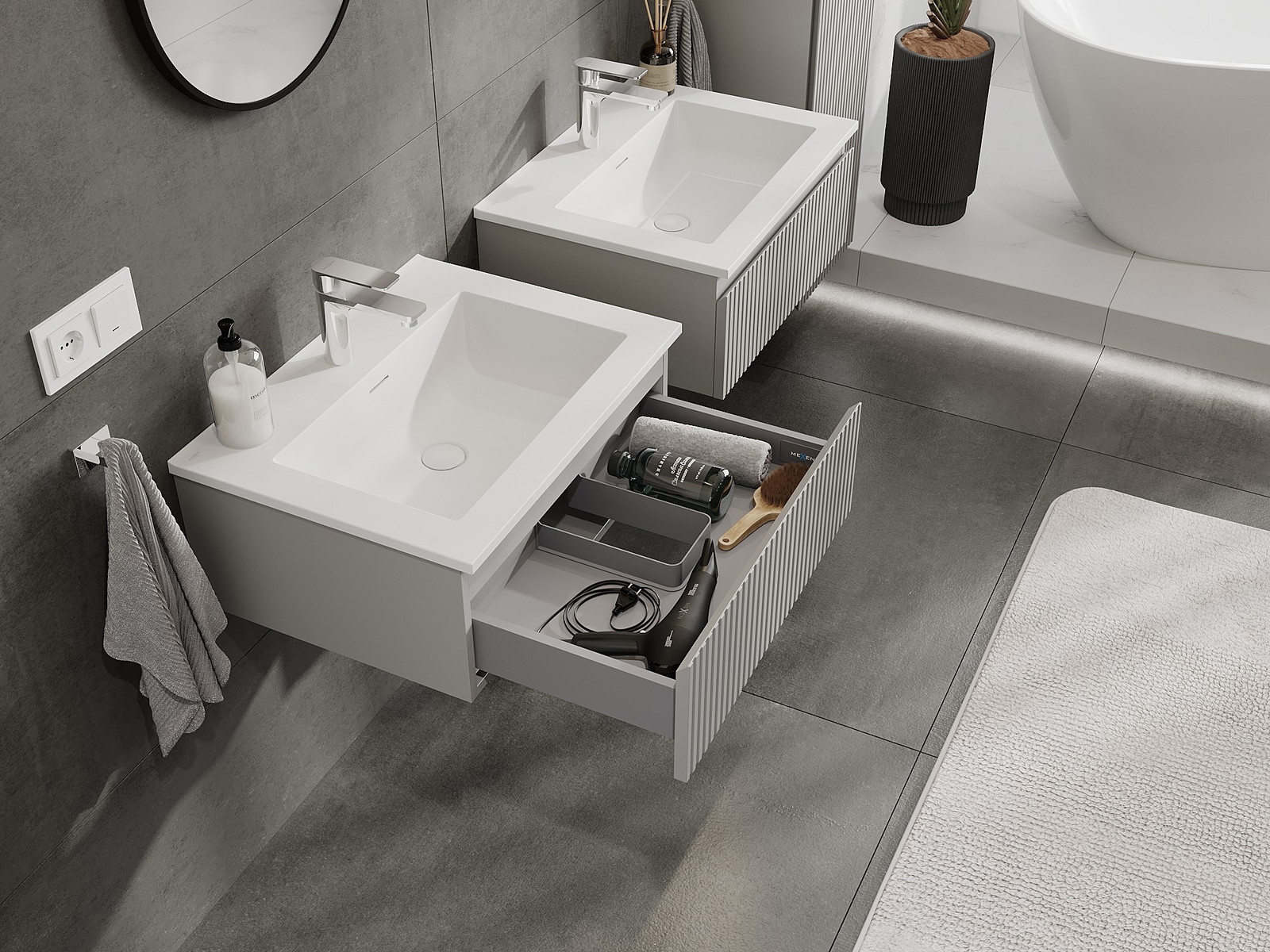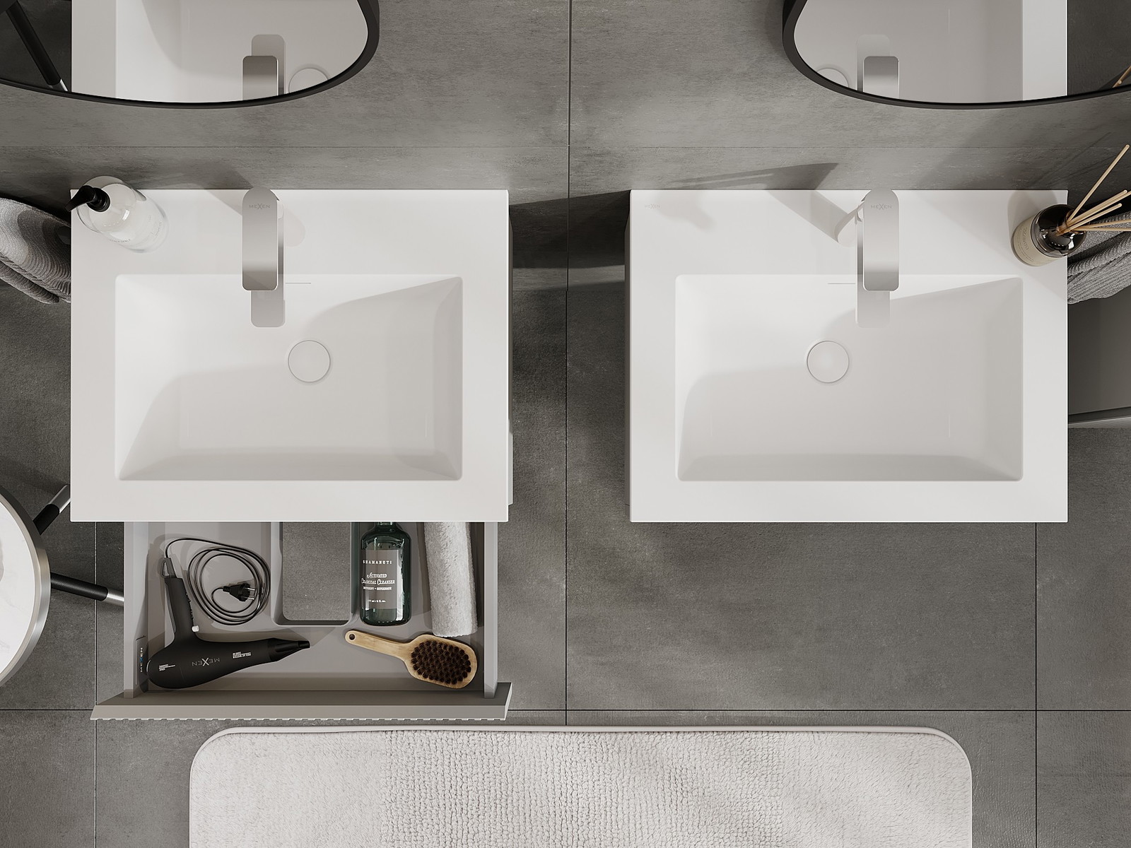 Mexen Rivel шкафче за баня 60 см с мивка Otis, 1 чекмедже, набраздени, сив мат/бял мат - 91A20-06023-1-BF62-W18M01