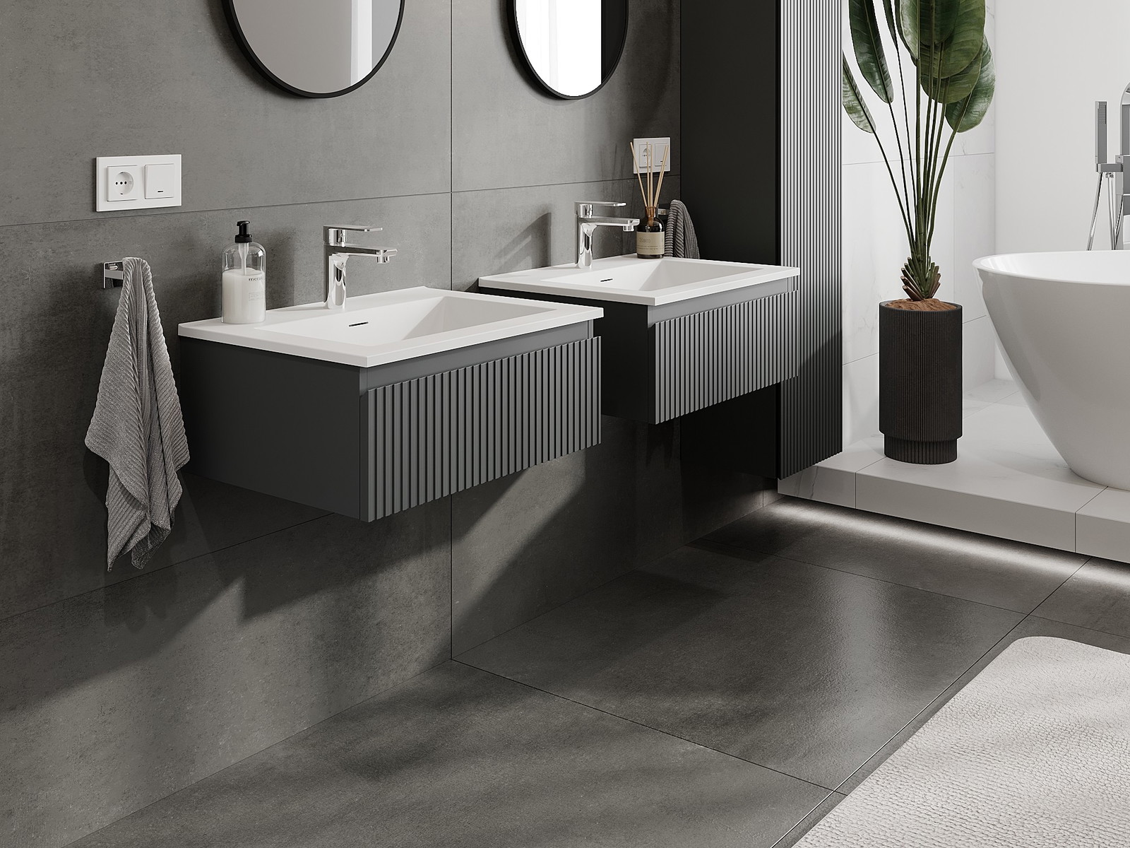 Нашите модулни мебели за баня могат да се комбинират в различни цветови конфигурации, което позволява пълна персонализация. Може да се избере както външният вид, така и функциите на отделните елементи, което позволява съчетаване на мебелите със собствените стилови и функционални предпочитания.
