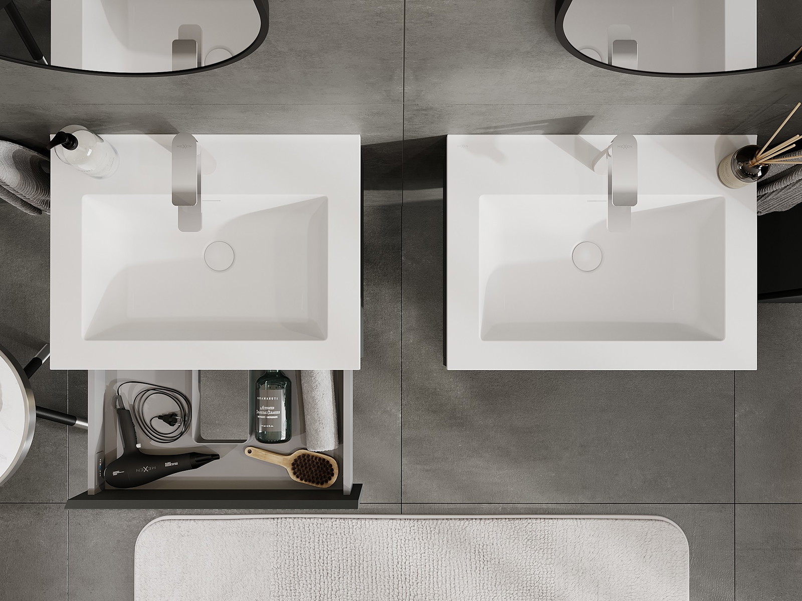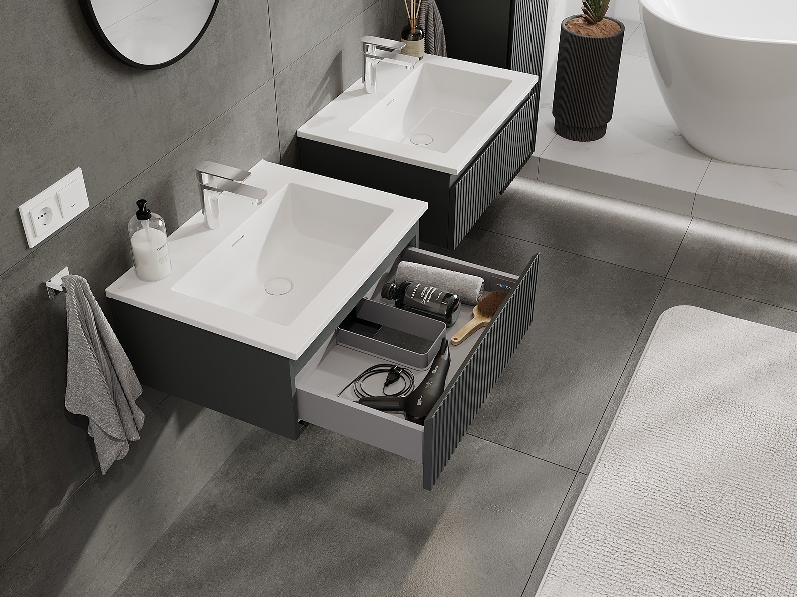 Mexen Rivel шкафче за баня 60 см с мивка Otis, 1 чекмедже, набраздено, графит
