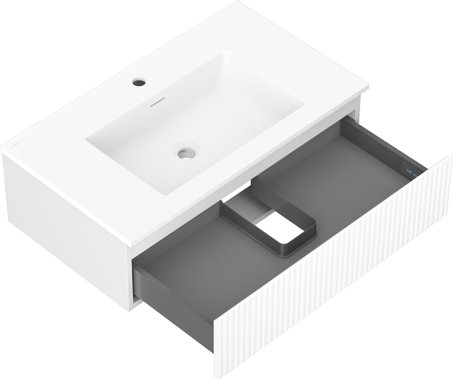 Изрезът в чекмеджето е проектиран по такъв начин, че да побере сифона, който е необходим в мивковите инсталации. Благодарение на това мебелът може да бъде монтиран напълно функционално, без да се налага отказване от пространството в чекмеджето заради инсталацията.