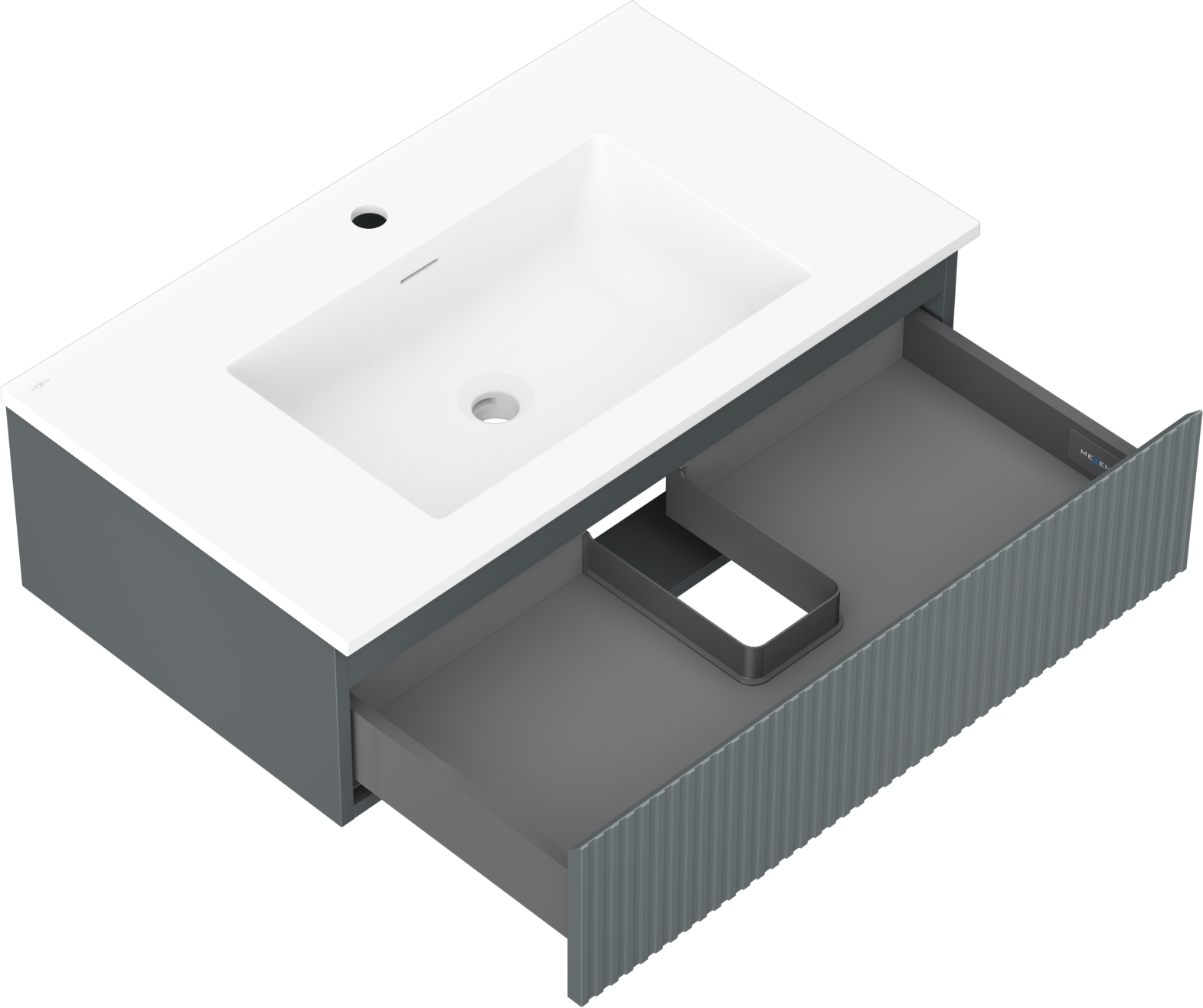 Mexen Rivel шкаф за баня 80 см с мивка Otis, 1 чекмедже, набраздена, графит мат/бяла мат - 91A20-08023-1-BF66-W18M01