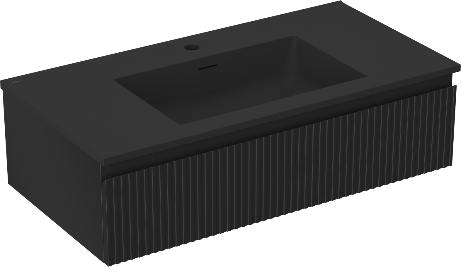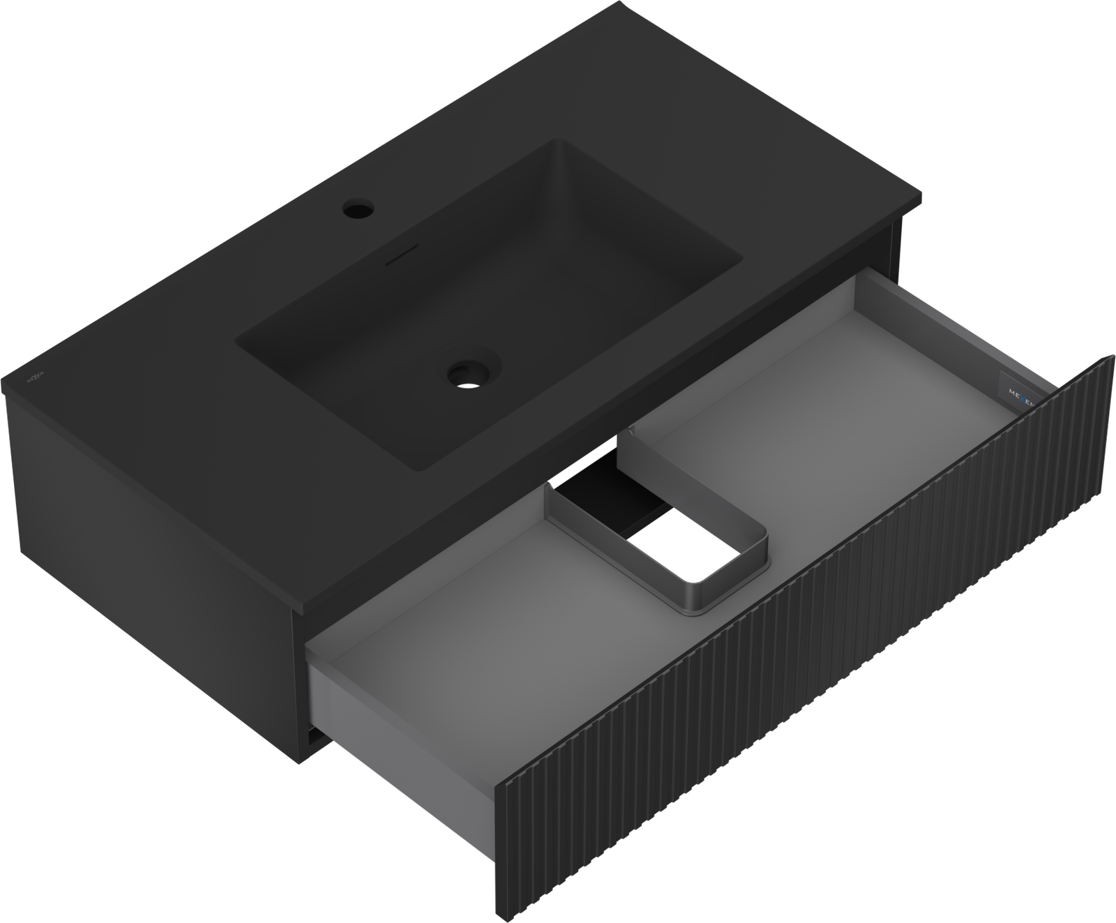 Mexen Rivel шкаф за баня 90 см с мивка Otis, 1 чекмедже, релефен, черен мат - 91A20-09023-1-BF71-W18M71