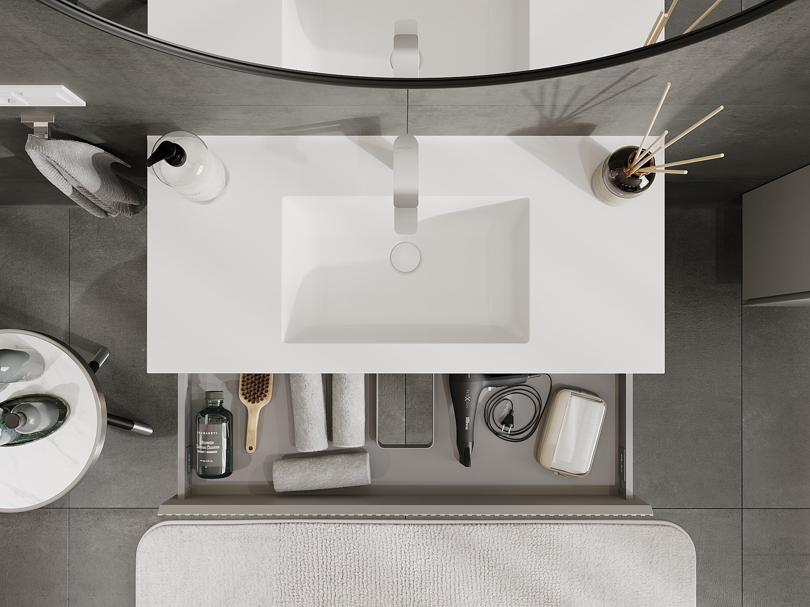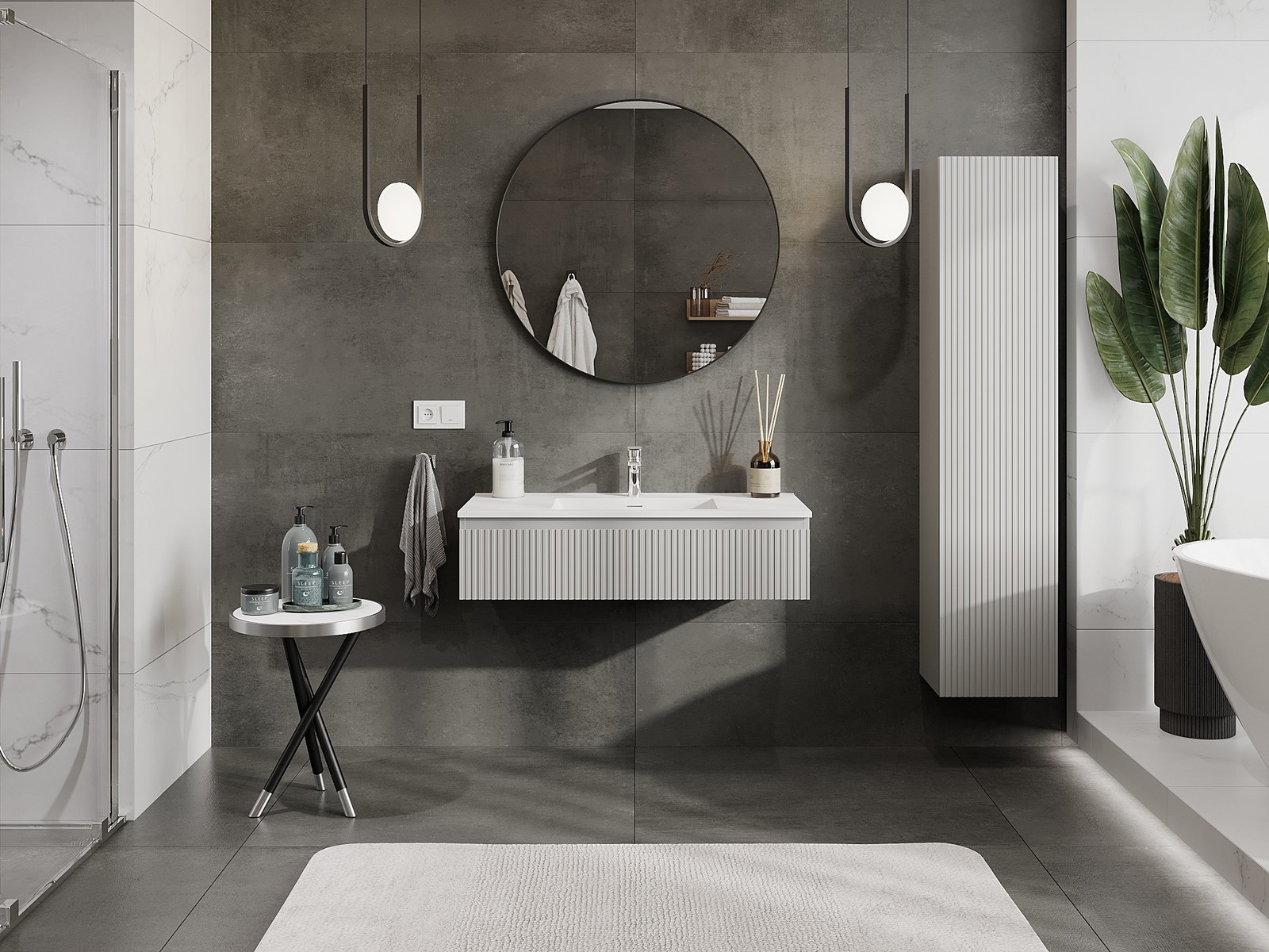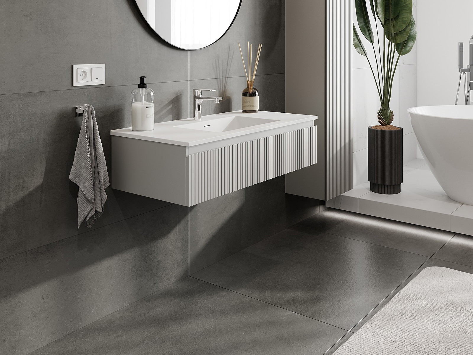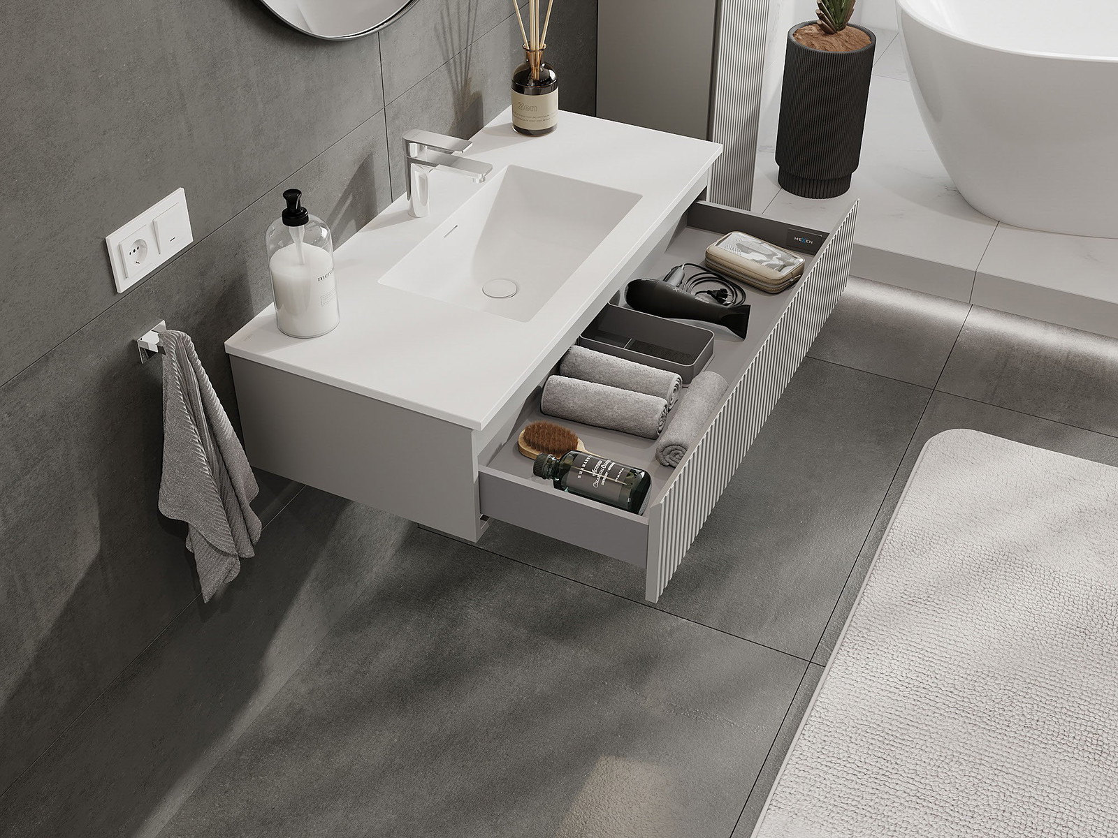 Mexen Rivel шкаф за баня 100 см с мивка Otis, 1 чекмедже, набразден, сив мат/бял