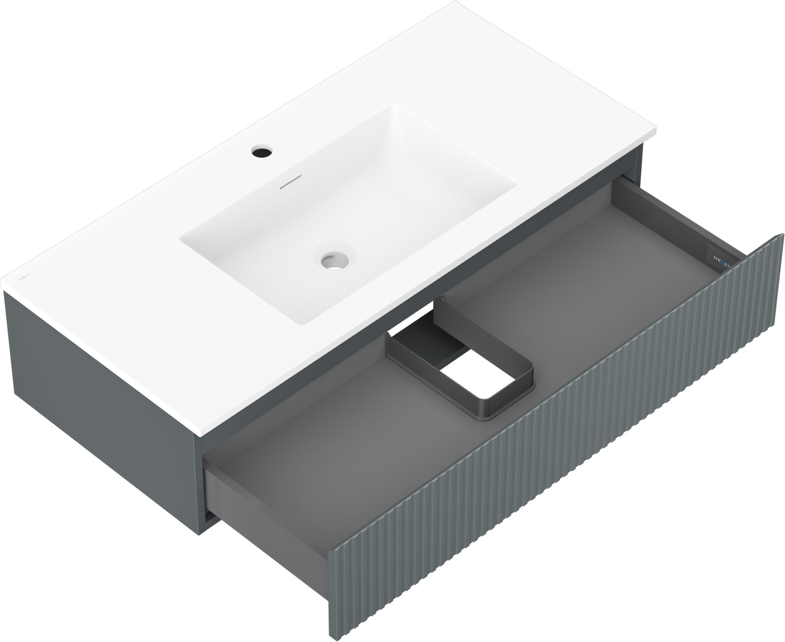 Изрезът в чекмеджето е проектиран по такъв начин, че да побере сифона, който е необходим в мивковите инсталации. Благодарение на това мебелът може да бъде монтиран напълно функционално, без да се налага отказване от пространството в чекмеджето заради инсталацията.