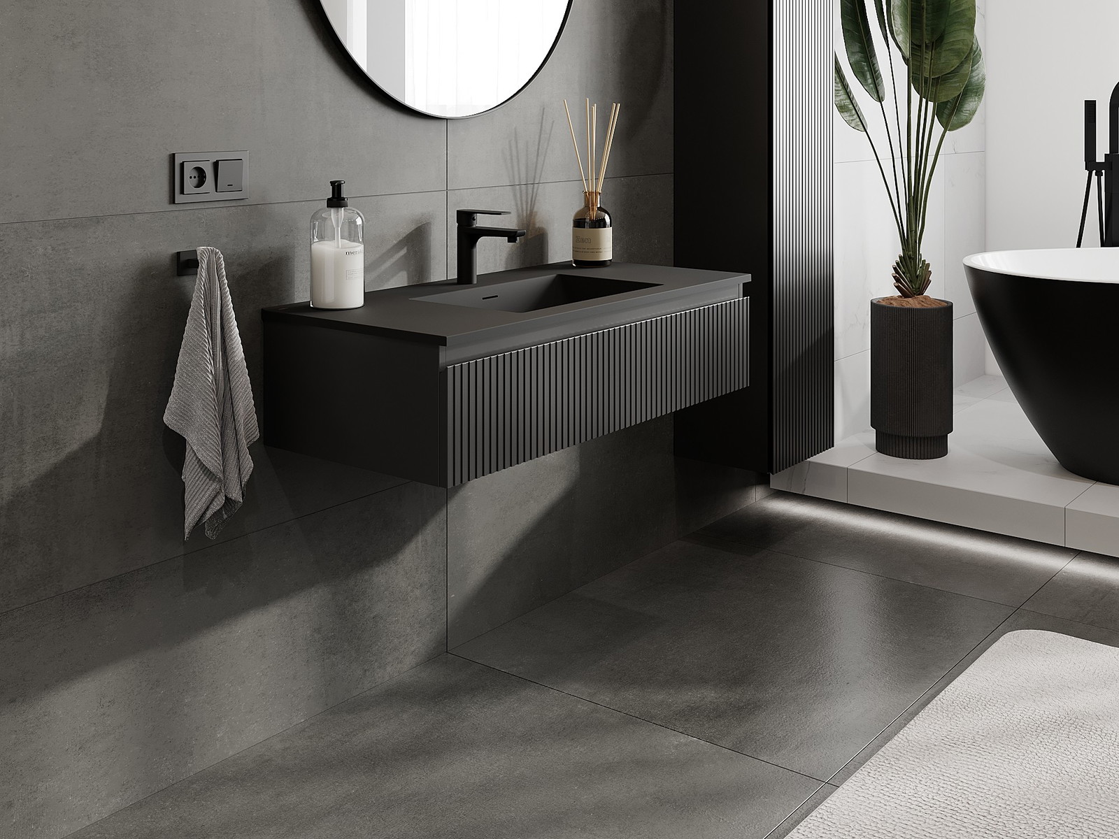Mexen Rivel шкаф за баня 100 см с мивка Otis, 1 чекмедже, оребрен, черен мат - 91A20-10023-1-BF71-W18M71