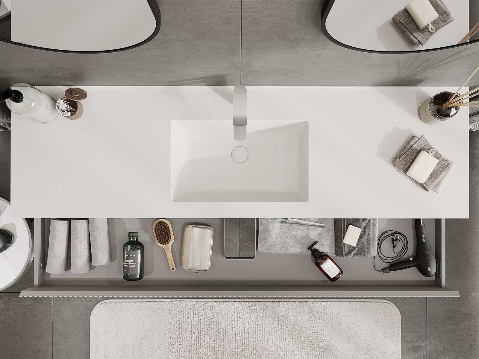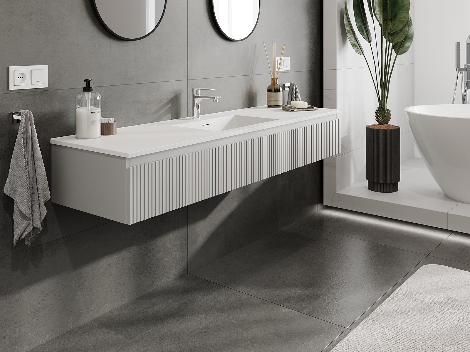 Mexen Rivel баня шкаф 160 см с мивка Otis, 1 чекмедже, рифелован, сив мат/бял мат