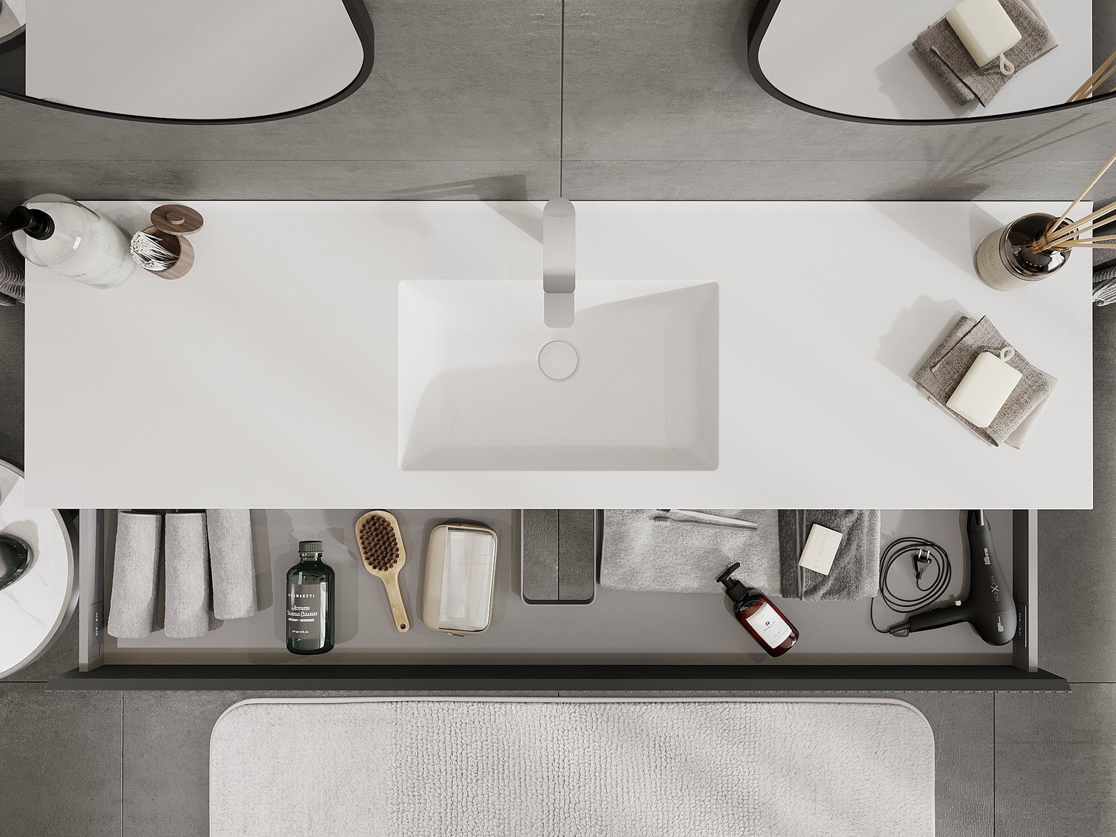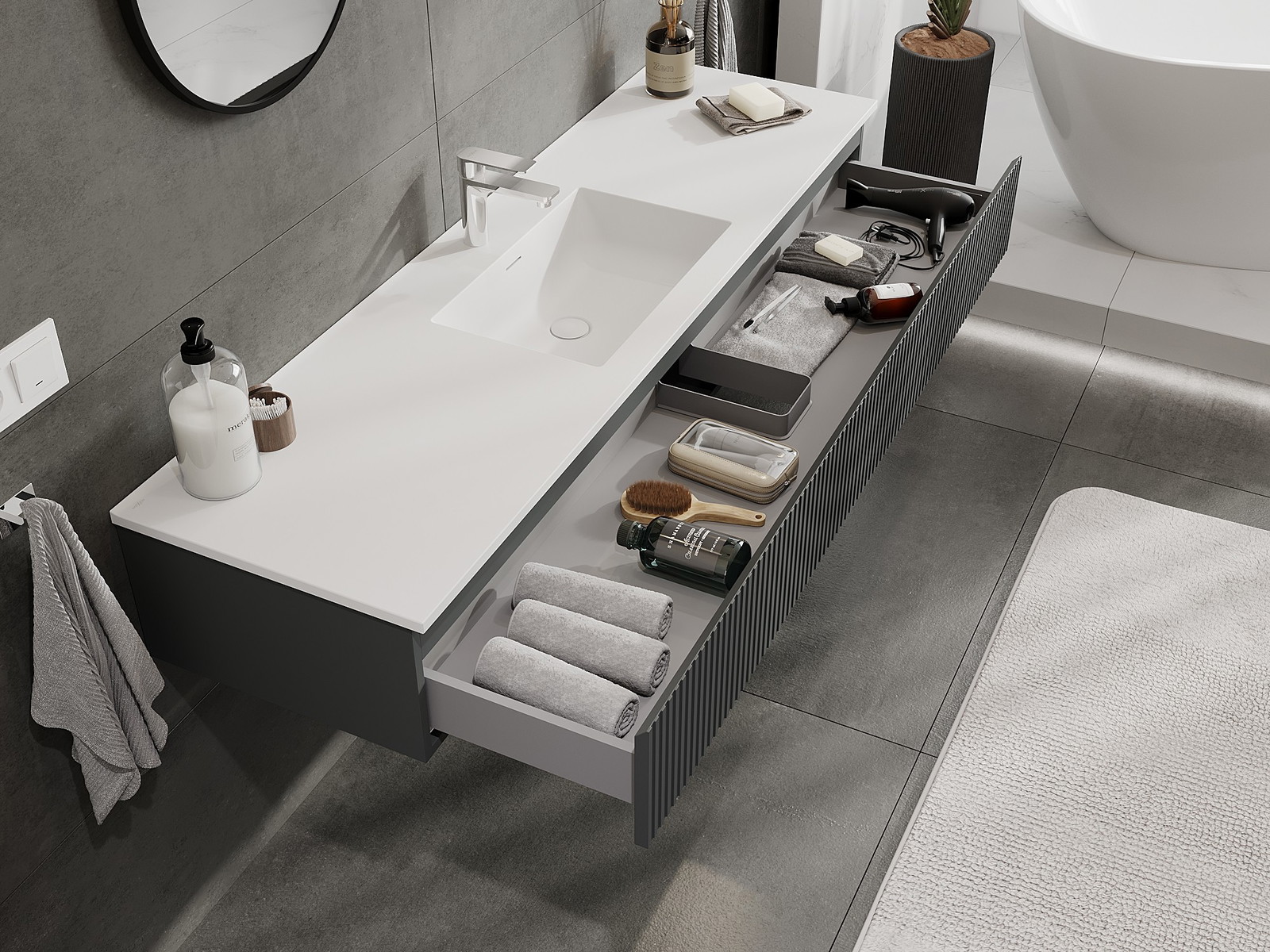 Mexen Rivel шкаф за баня 160 см с умивалник Otis, 1 чекмедже, оребрен, графит