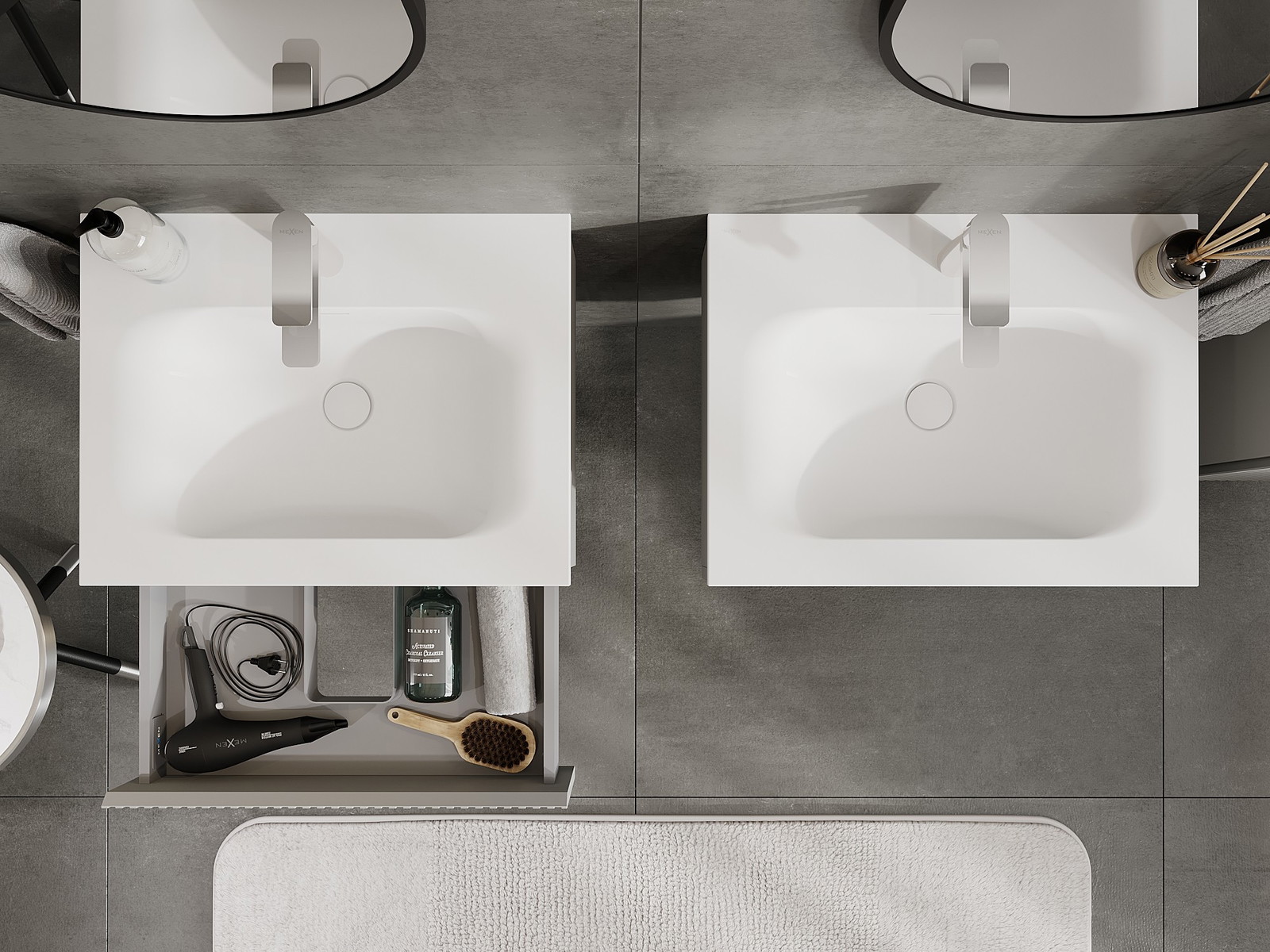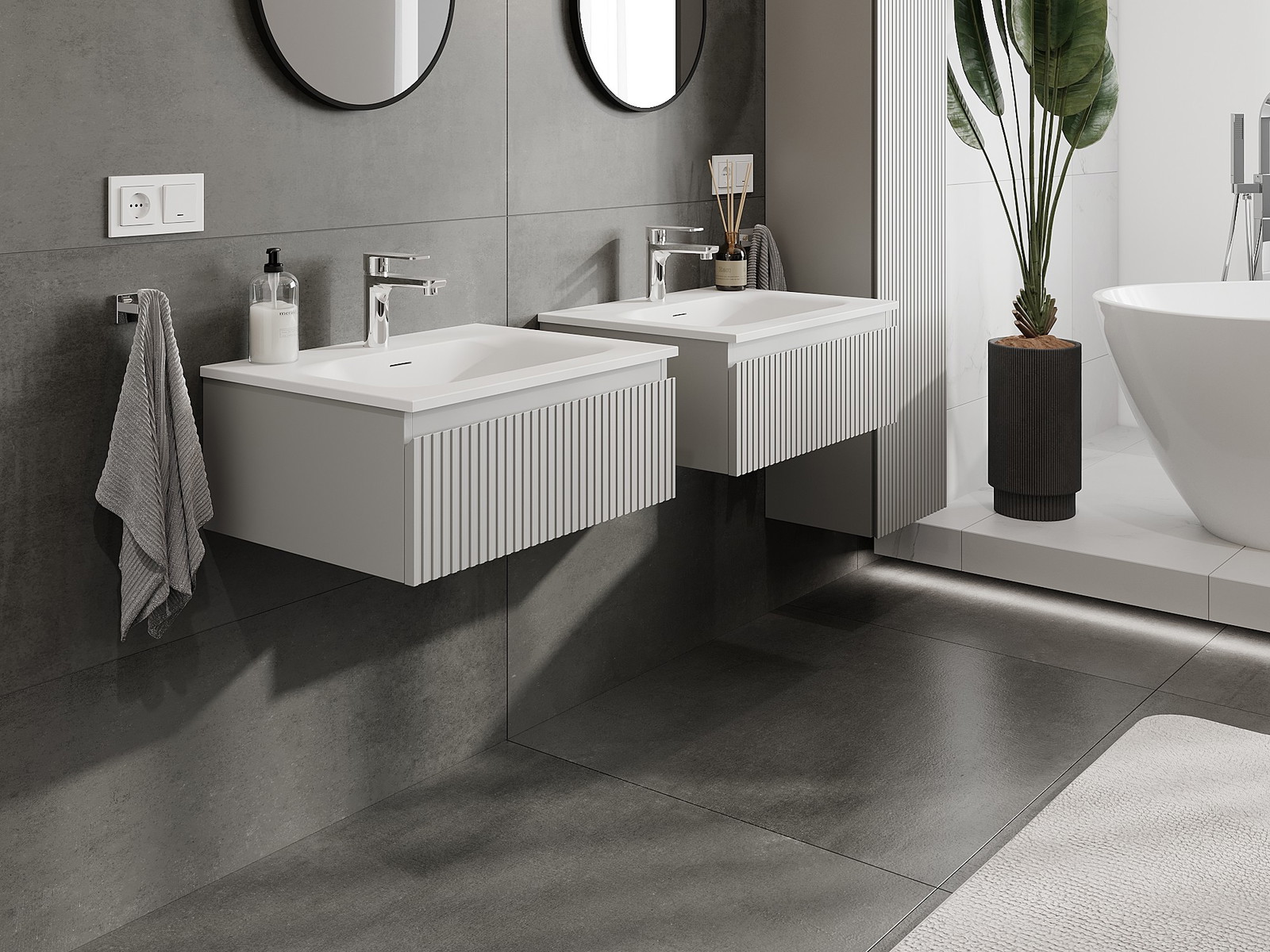 Нашите модулни мебели за баня могат да се комбинират в различни цветови конфигурации, което позволява пълна персонализация. Може да се избере както външният вид, така и функциите на отделните елементи, което позволява съчетаване на мебелите със собствените стилови и функционални предпочитания.