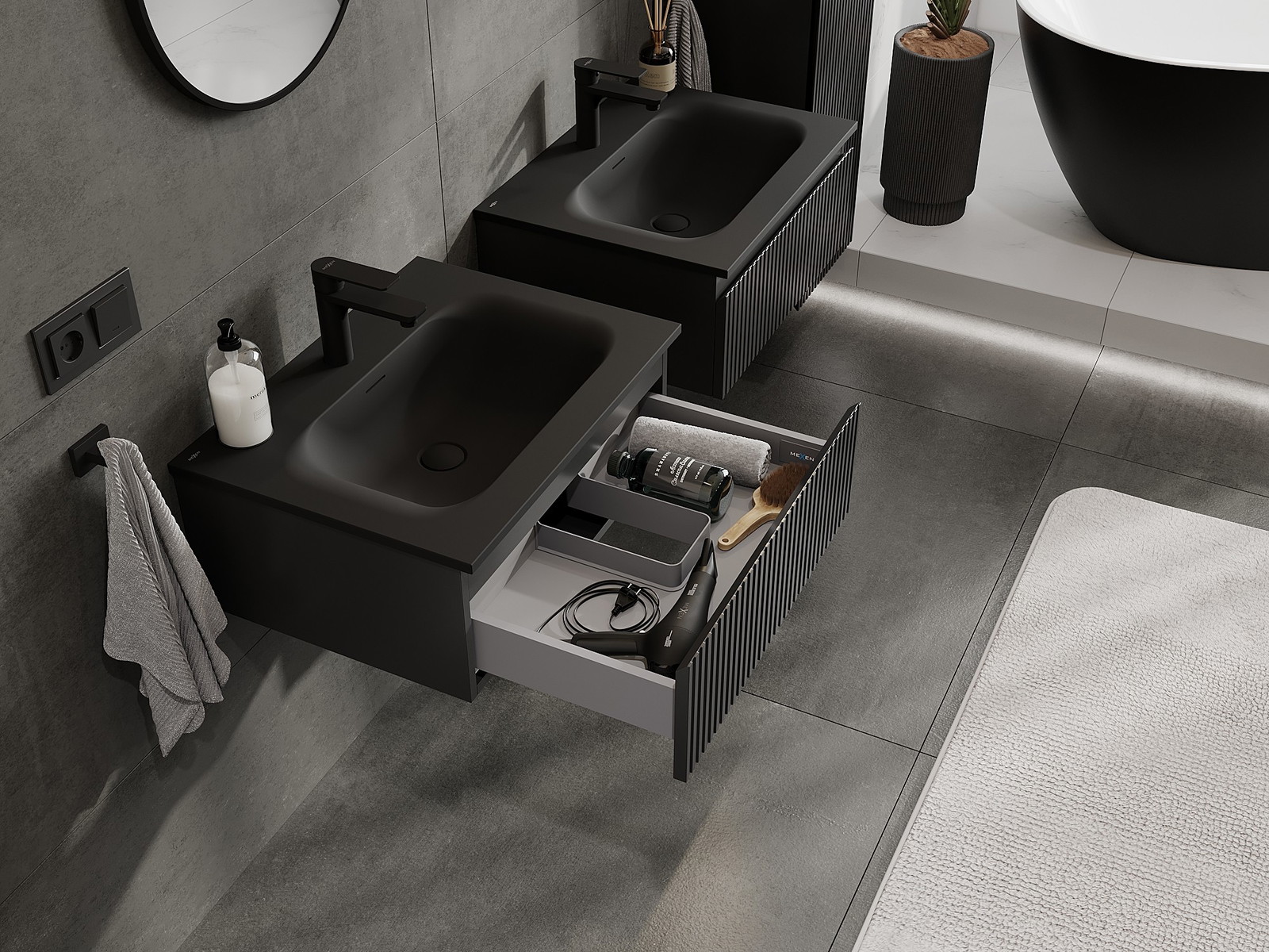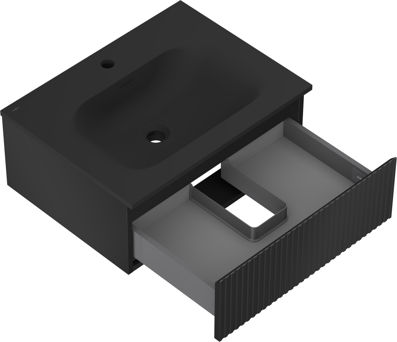 Изрезът в чекмеджето е проектиран по такъв начин, че да побере сифона, който е необходим в мивковите инсталации. Благодарение на това мебелът може да бъде монтиран напълно функционално, без да се налага отказване от пространството в чекмеджето заради инсталацията.