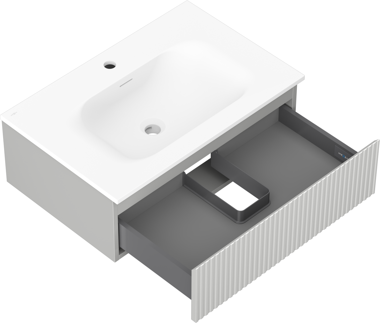 Изрезът в чекмеджето е проектиран по такъв начин, че да побере сифона, който е необходим в мивковите инсталации. Благодарение на това мебелът може да бъде монтиран напълно функционално, без да се налага отказване от пространството в чекмеджето заради инсталацията.