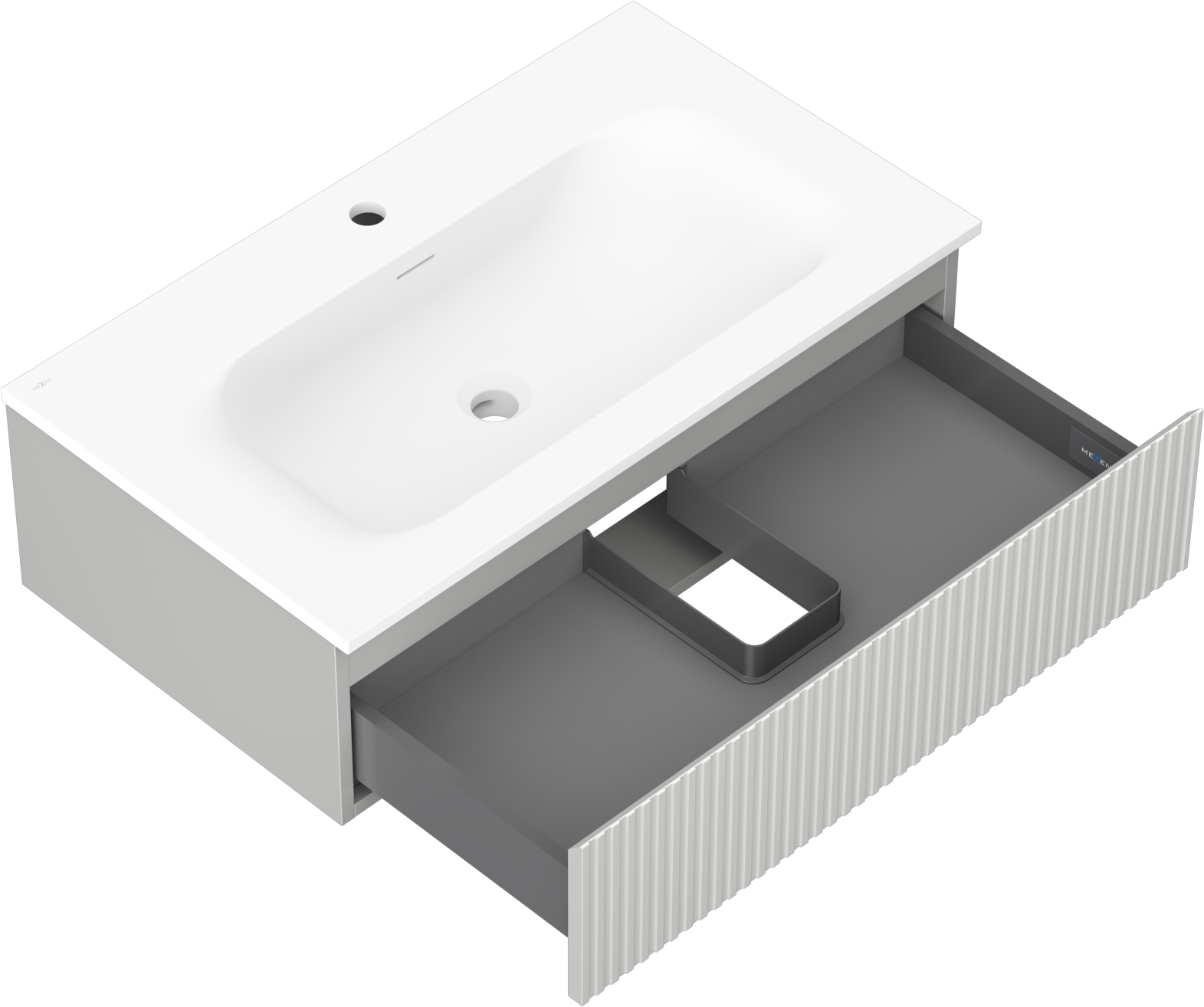 Изрезът в чекмеджето е проектиран по такъв начин, че да побере сифона, който е необходим в мивковите инсталации. Благодарение на това мебелът може да бъде монтиран напълно функционално, без да се налага отказване от пространството в чекмеджето заради инсталацията.