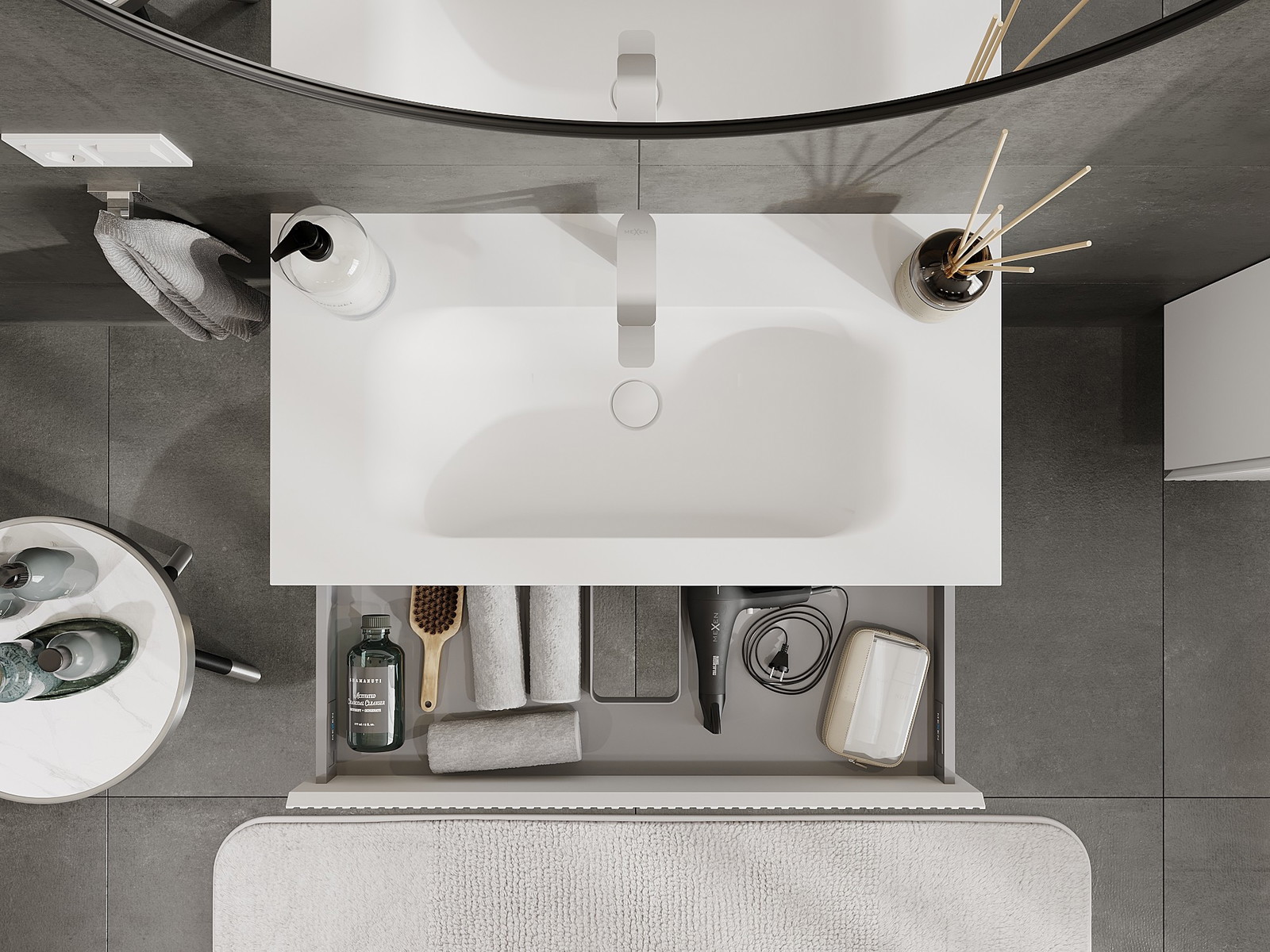 Корпусът на шкафа се доставя напълно сглобен, което означава максимално удобство и спестяване на време. Не е нужно да губите часове за сглобяване на мебела – просто го монтирайте на избраното място в банята. Това е идеалното решение за хора, които ценят бързия монтаж и незабавния ефект.