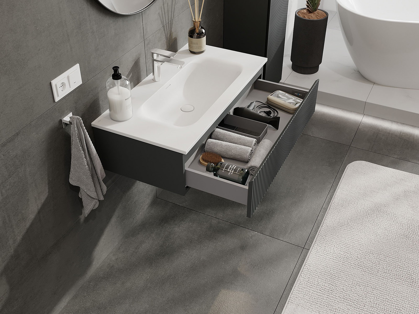 Нашите модулни мебели за баня могат да се комбинират в различни цветови конфигурации, което позволява пълна персонализация. Може да се избере както външният вид, така и функциите на отделните елементи, което позволява съчетаване на мебелите със собствените стилови и функционални предпочитания.