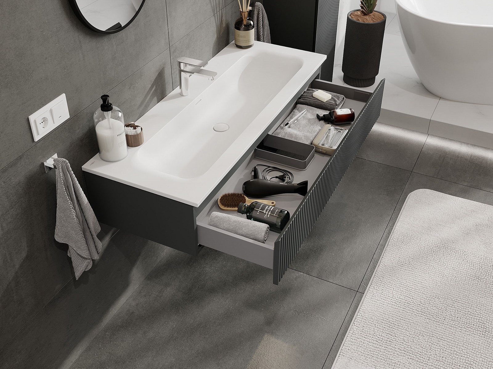 Нашите модулни мебели за баня могат да се комбинират в различни цветови конфигурации, което позволява пълна персонализация. Може да се избере както външният вид, така и функциите на отделните елементи, което позволява съчетаване на мебелите със собствените стилови и функционални предпочитания.