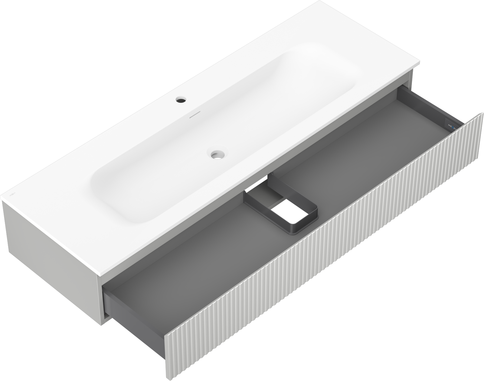 Изрезът в чекмеджето е проектиран по такъв начин, че да побере сифона, който е необходим в мивковите инсталации. Благодарение на това мебелът може да бъде монтиран напълно функционално, без да се налага отказване от пространството в чекмеджето заради инсталацията.