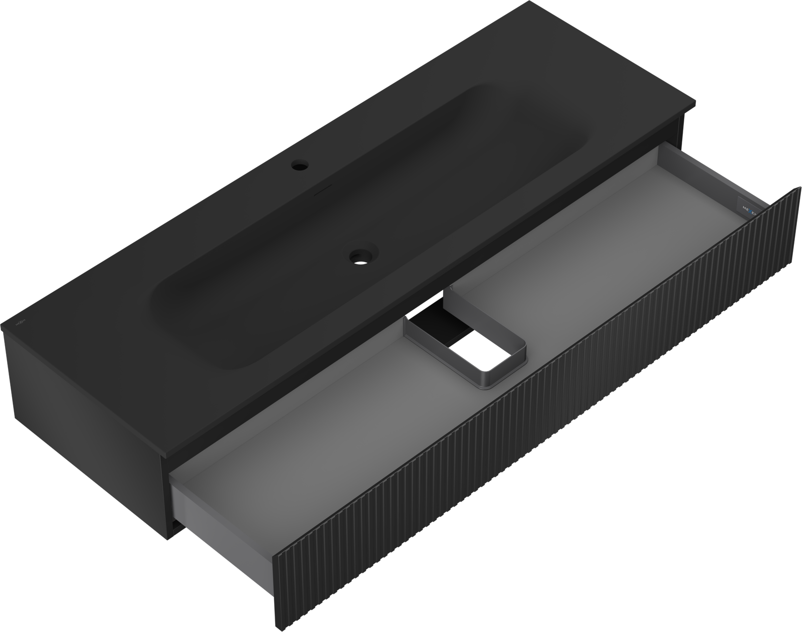 Изрезът в чекмеджето е проектиран по такъв начин, че да побере сифона, който е необходим в мивковите инсталации. Благодарение на това мебелът може да бъде монтиран напълно функционално, без да се налага отказване от пространството в чекмеджето заради инсталацията.