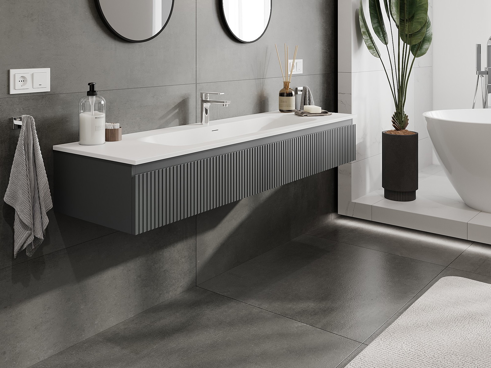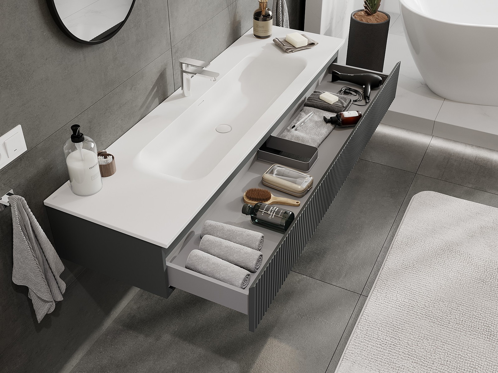 Нашите модулни мебели за баня могат да се комбинират в различни цветови конфигурации, което позволява пълна персонализация. Може да се избере както външният вид, така и функциите на отделните елементи, което позволява съчетаване на мебелите със собствените стилови и функционални предпочитания.