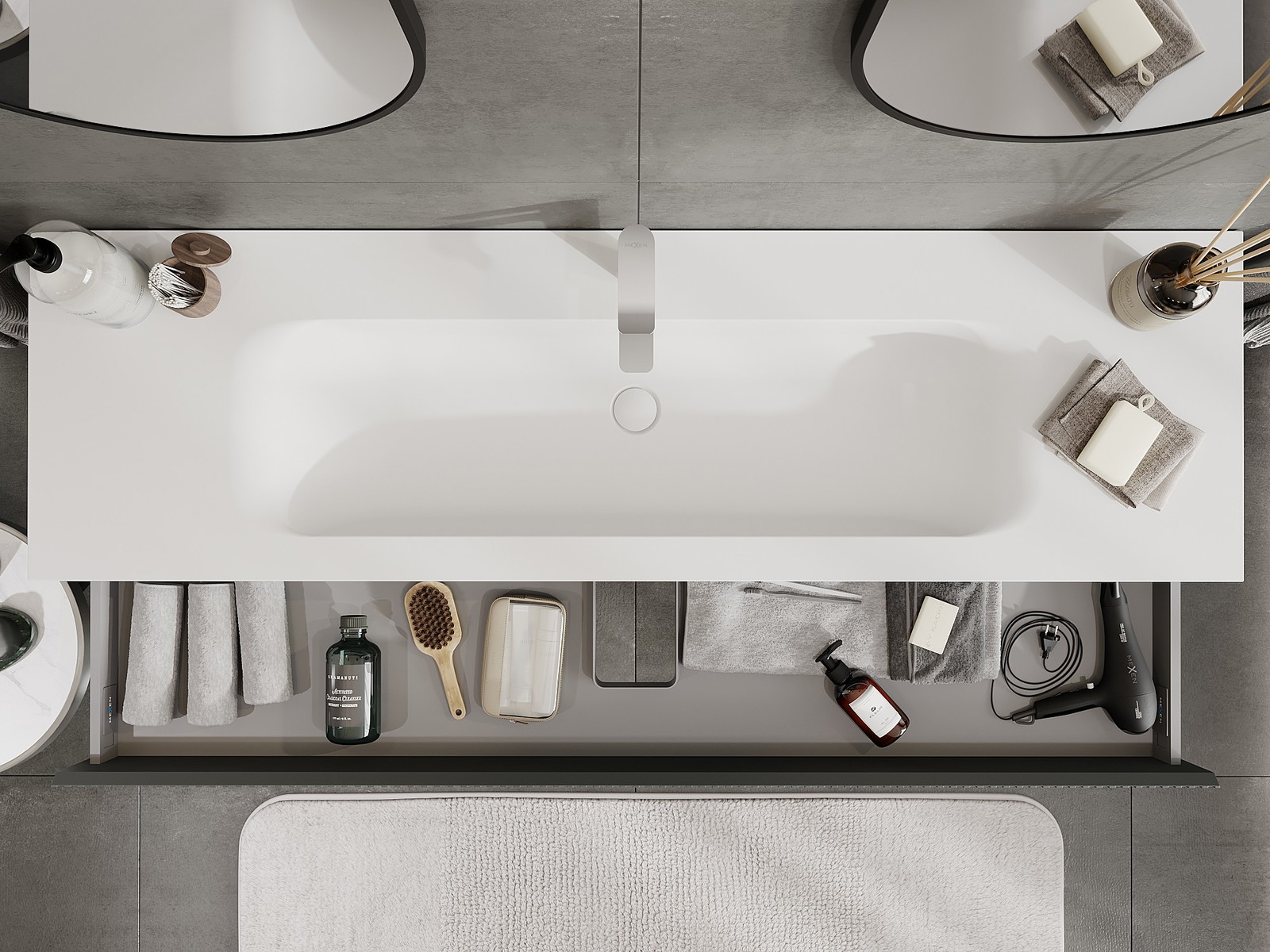 Изрезът в чекмеджето е проектиран по такъв начин, че да побере сифона, който е необходим в мивковите инсталации. Благодарение на това мебелът може да бъде монтиран напълно функционално, без да се налага отказване от пространството в чекмеджето заради инсталацията.