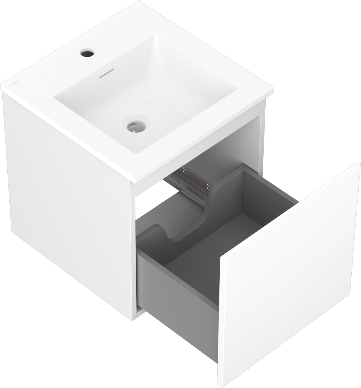 Изрезът в чекмеджето е проектиран по такъв начин, че да побере сифона, който е необходим в мивковите инсталации. Благодарение на това мебелът може да бъде монтиран напълно функционално, без да се налага отказване от пространството в чекмеджето заради инсталацията.