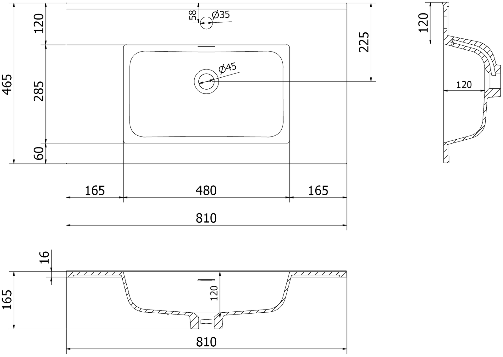 Размери на мивката: