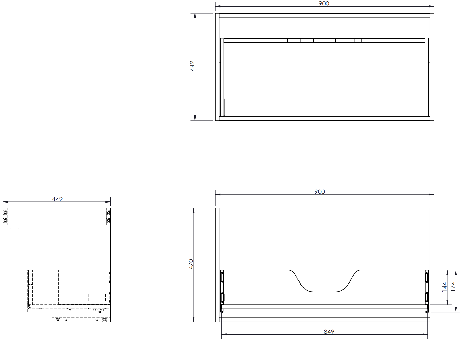 Изрезът в чекмеджето е проектиран по такъв начин, че да побере сифона, който е необходим в мивковите инсталации. Благодарение на това мебелът може да бъде монтиран напълно функционално, без да се налага отказване от пространството в чекмеджето заради инсталацията.